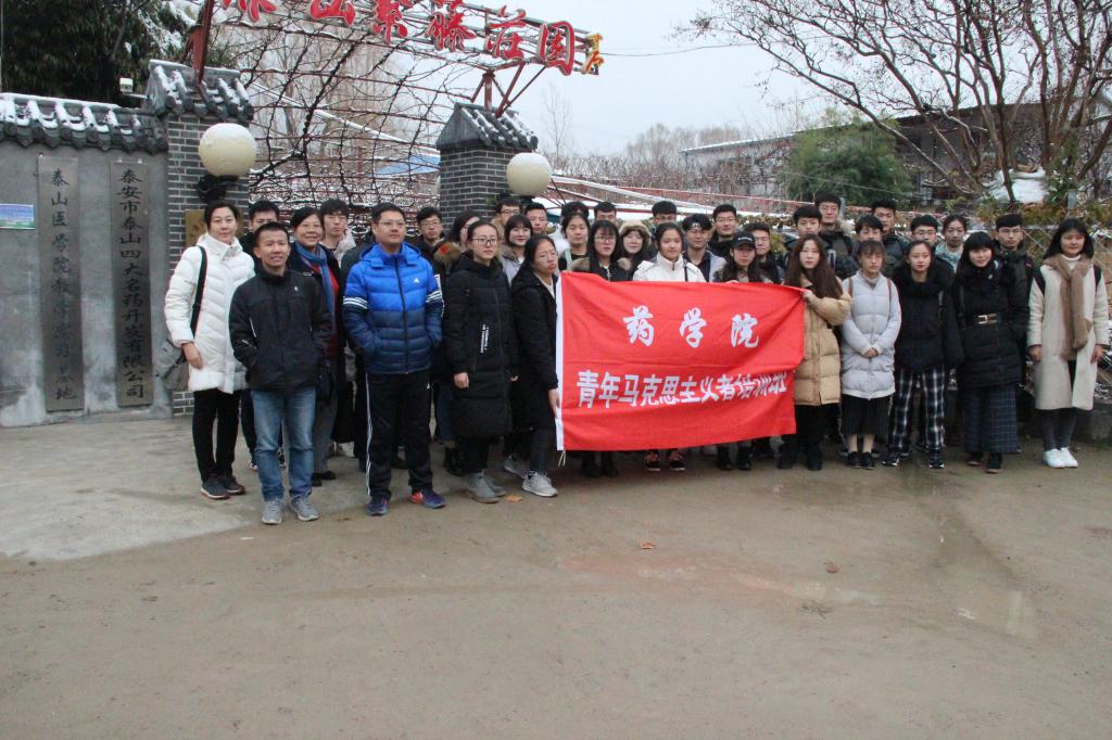 为增加青马班学员们的实践经验,使学生了解各类药物种植副的相关知识,12月6日上午,药学院党委副书记张鸣凤、团总支书记张萌、学工办副主任乔峰老师及贾伍员、乔杰老师带领我院青年马克思主义者培训班全体学员参观了泰安市泰山四大名药开发有限公司和山东鲁抗医药集团。