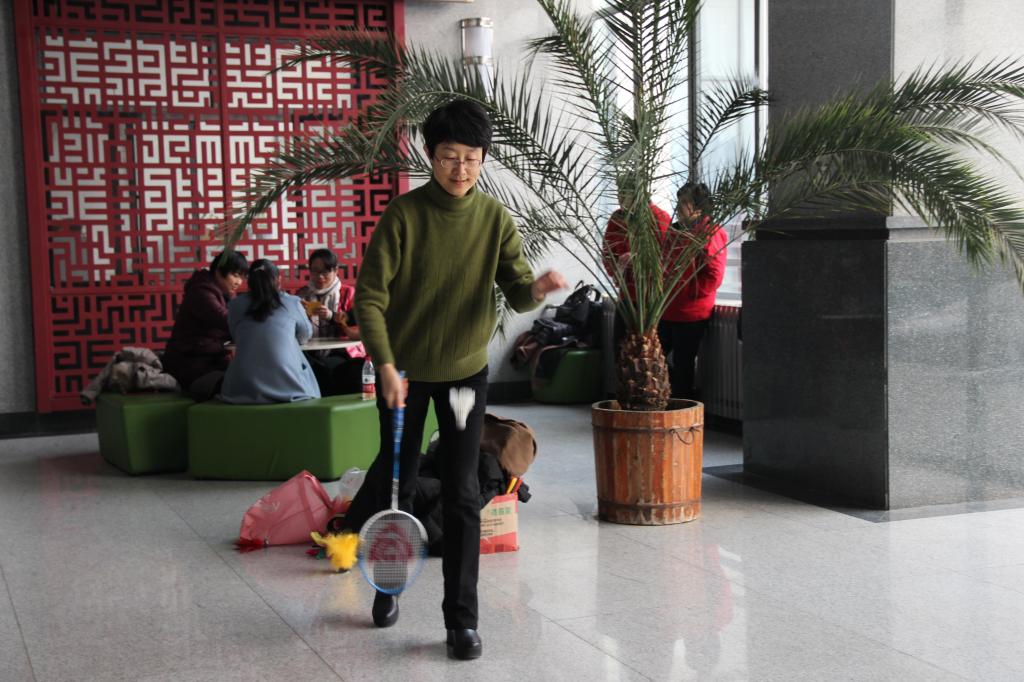 在“小型保龄球”项目中,老师们每人有两次机会,站在五米外踢倒装满水的矿泉水瓶,这不仅仅是考验了老师们的发球力度,更考验其精准度;在“沙包投掷”项目中,老师们站在三米外向桶中投掷沙包,老师们摩拳擦掌,跃跃欲试,还有的老师玩起了躲沙包的游戏;在“夹乒乓球”项目中,老师们用筷子将乒乓球夹到距离五米处的小筐中,只见老师们小心翼翼的夹球,生怕球一不小心就滚落地上,有的更是为了分散对方的注意力而想出各种方法,活动在欢呼声中热火朝天的进行着,场上的氛围也越来越热烈。最后是“踢毽子”“跳大绳”“打羽毛球”等比赛项目,这真正到了老师们大显身手的时候了,大家都乐在其中,体验到了运动的快乐、竞争的乐趣和参与的喜悦。