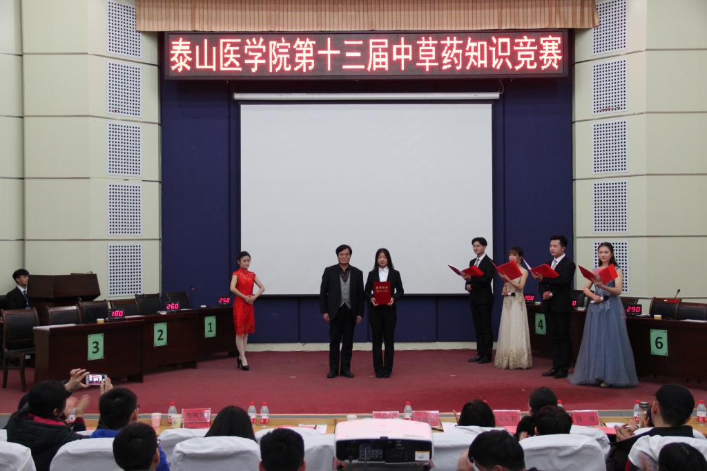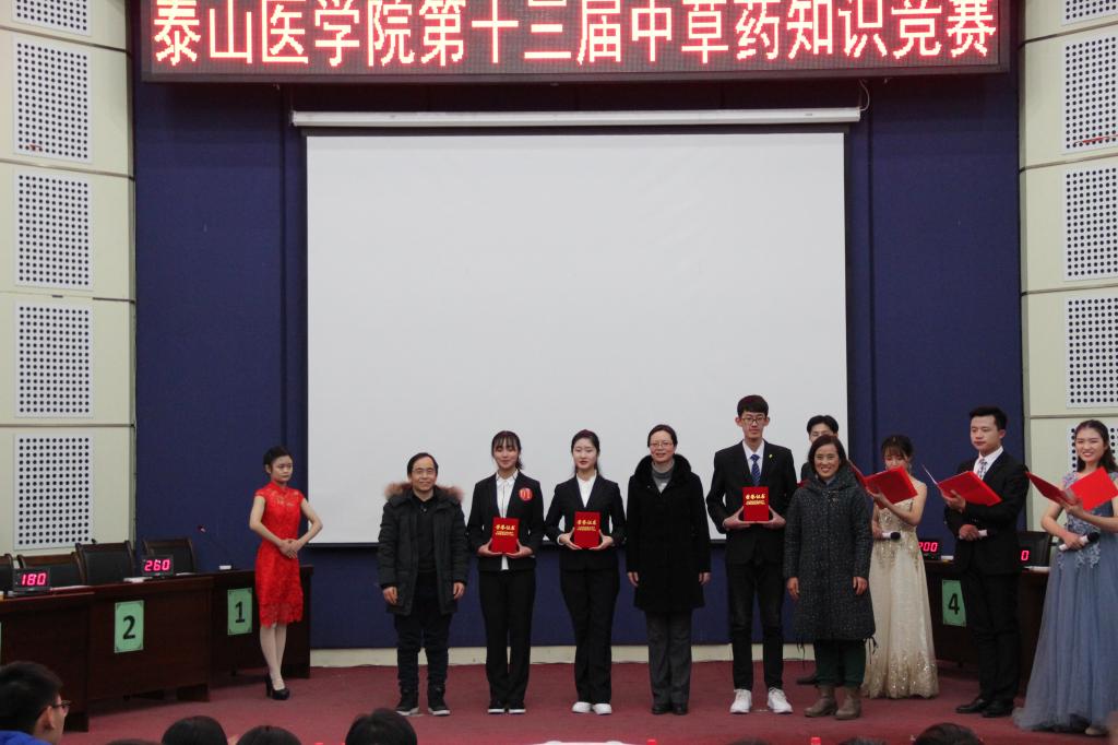 比赛结果公布前,王德才院长对各代表队的到来表达了感谢,并对本次竞赛做出点评,强调了掌握中药知识的必要性。在激烈的比赛环节中,还穿插着旋律优美的歌曲《当你》、《绒花》和舞姿动人的舞蹈《风月》,激烈的比赛和美妙的歌舞让在场的每个人都意犹未尽。最终,经过激烈的比拼,“灵知”队获得一等奖,“二临代表”队、“药医仁心”队获得二等奖,“丁香”队、“Always on the Way”队、“To Be the Best”队获得三等奖。比赛最后,评委老师颁奖并与参赛选手合影留念。