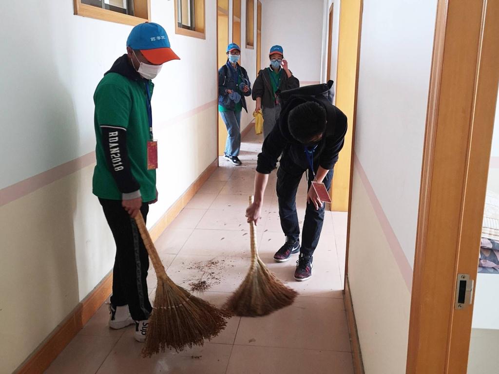 早上7点,志愿者们坐车来到了上高街道敬老院。一进门,志愿者们就进入了忙碌状态,纷纷拿起抹布,拾起扫把,为敬老院打扫卫生。志愿者们认真打扫满是尘土的宿舍,历时一个半小时后,志愿者们齐心协力将房间变得焕然一新。