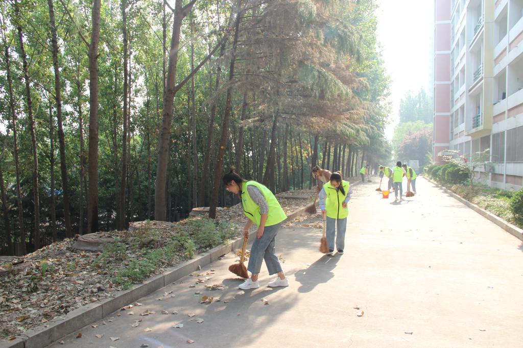在活动负责人带领下,同学们分为两组,拿着准备好的扫帚、簸箕、垃圾桶等卫生工具,来到了松竹园门口,对松竹园周边进行卫生清洁。在活动过程中,同学们充分发挥主人翁的责任感,大家一起拔除杂草,扫落叶,捡拾枯枝,齐心协力、不怕脏,不怕累,干得热火朝天。最后,经过同学们两个小时的认真打扫,道路变得干净整洁,草坪无垃圾败叶,校园环境得到了明显改善。
