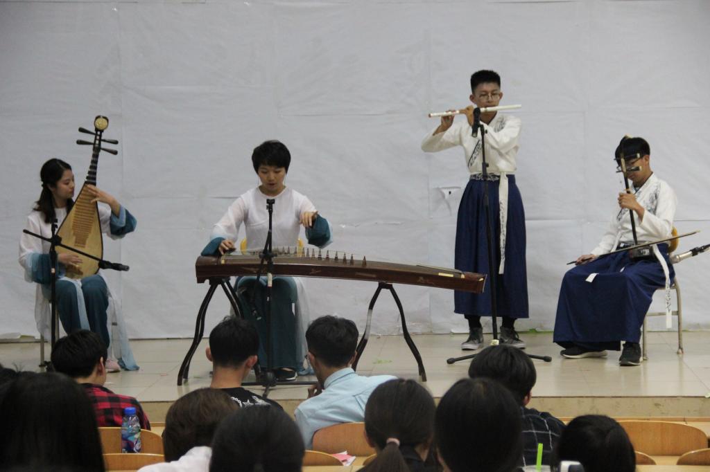 舞蹈《纸扇书生》,一展一收宛如一撇一捺,勾画出中华文化的博大精深,为观众呈现了一场精彩的视觉盛宴。我的祖国,地大物博,《我的祖国》朗诵节目,道出锦绣中华,山河壮丽,彰显了大学生的爱国情怀。歌曲《风吹麦浪》的温柔声音编织出轻盈又浪漫的景象。器乐合奏《江湖》律动十足,将晚会推向高潮。