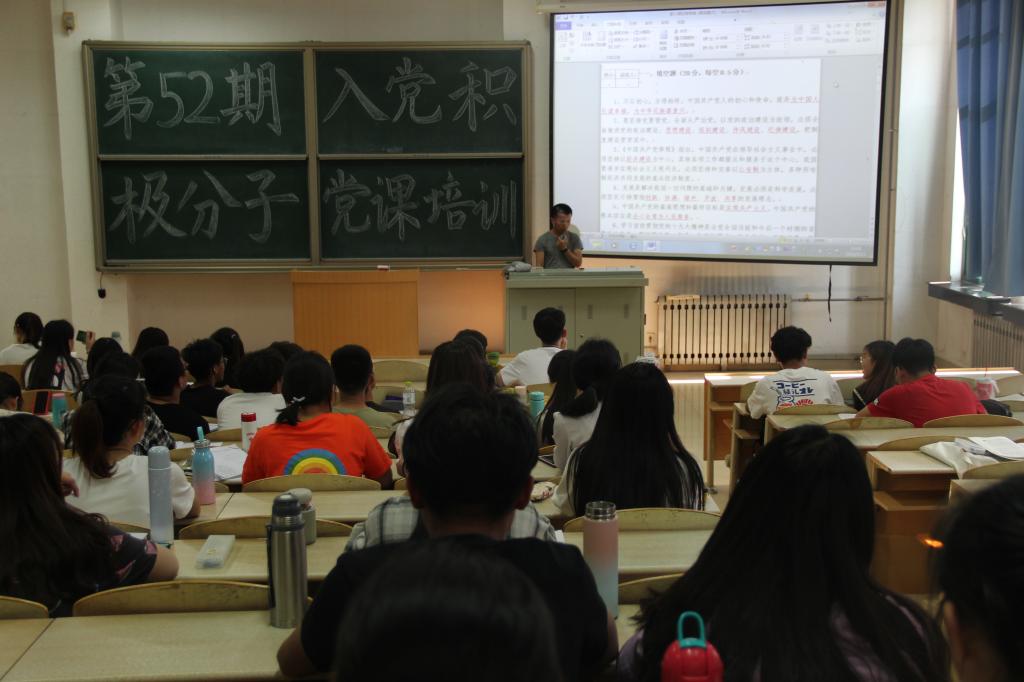 贾伍员老师讲述了近年来入党积极分子的考试基本情况,提醒同学们一定要重视基础知识的理解和掌握,认真复习、诚信考试。最后,贾老师希望各位同学们提高自身修养,严格要求自己,以实际行动争取早日加入中国共产党。