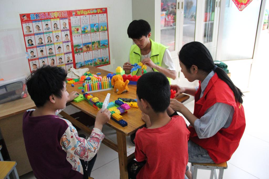 随后,青马班学员们分成两组,一组带领小朋友们在活动室玩滑梯、打球、跳绳,另一组则和小朋友们一起搭积木、玩魔方、画画。成员们积极与孩子们沟通交流,教他们识字、唱歌,和他们一起玩游戏,陪伴孩子们度过了一个充实愉快的六一儿童节。