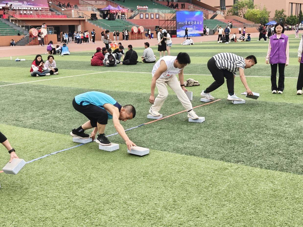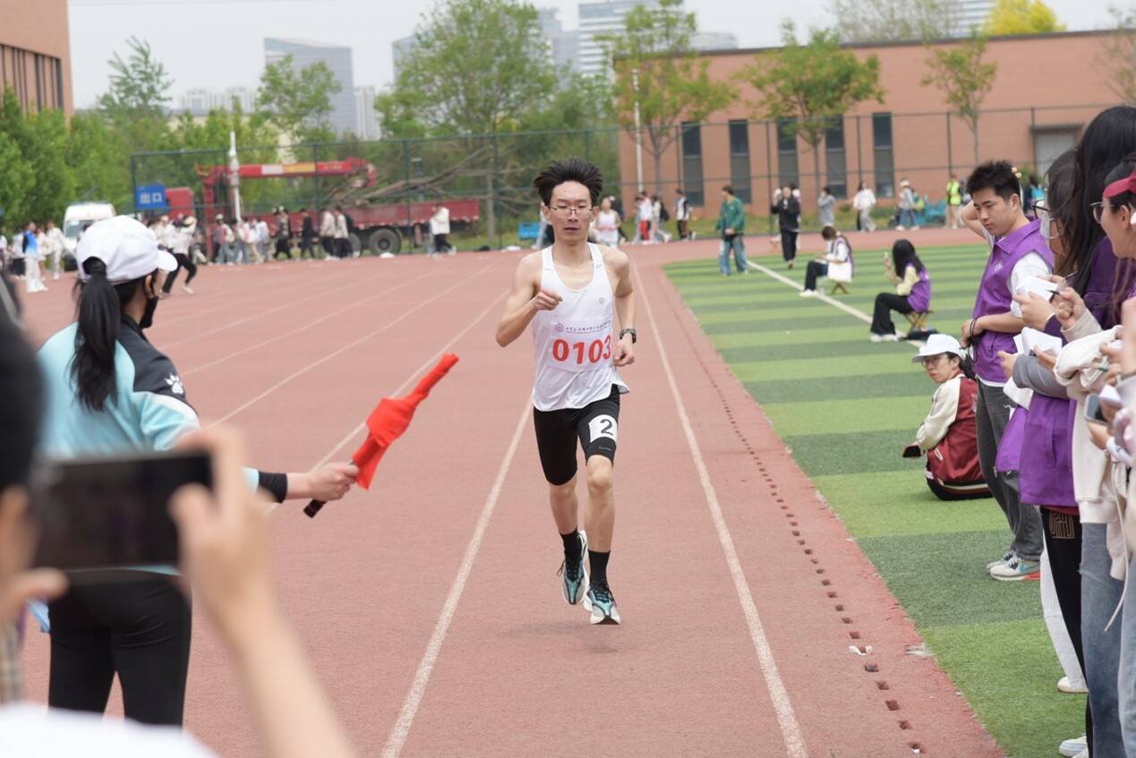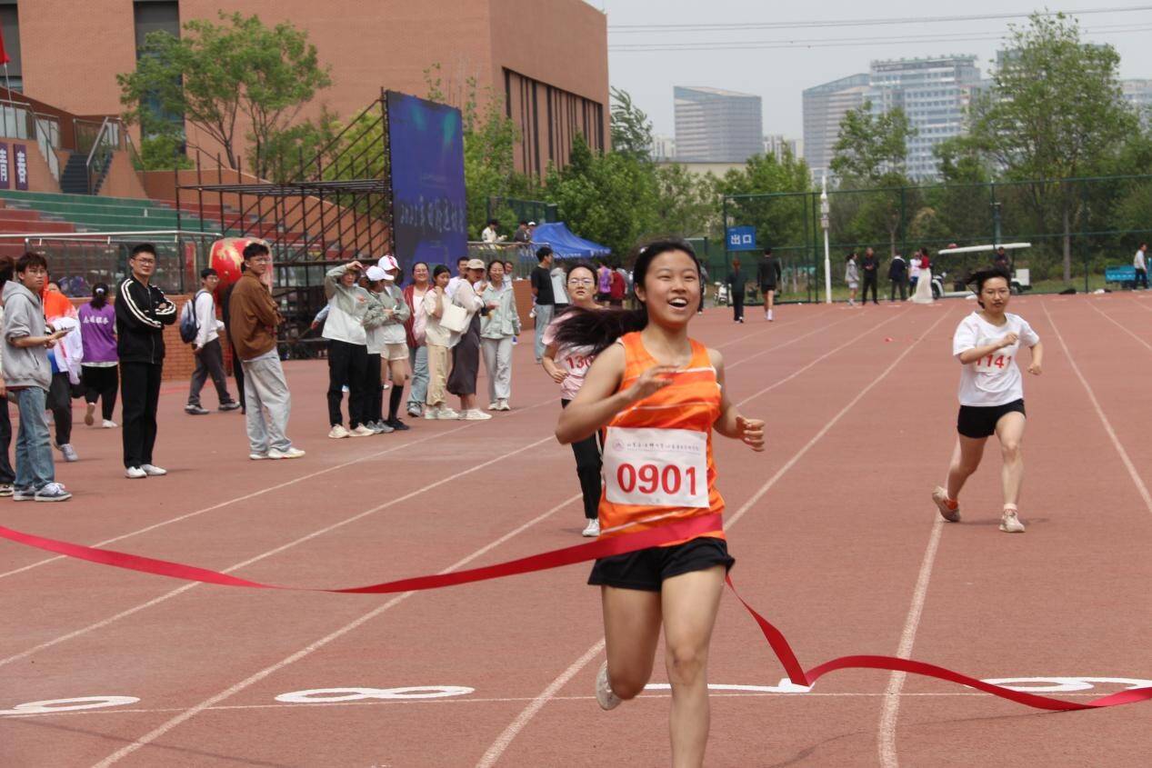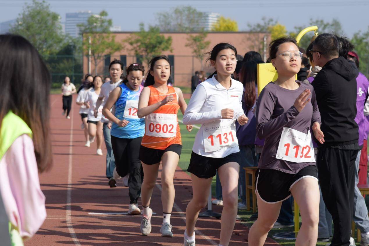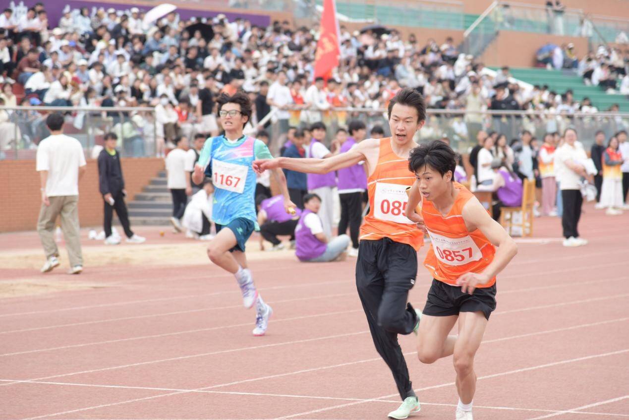 学生们在径赛中同样激情四溢。百米赛道上,选手们如离弦之箭,风驰电掣般冲向前方,疾风掠过衣角,足下生烟;千米征途里,长跑健儿们似孤鹰逐日,步伐坚韧,即便汗水湿透衣衫,也凭借坚定的信念勇往直前。接力赛中,四道身影如流光递火,交接棒瞬间,掌心相贴,信任与力量顺着接力棒传递,团队精神在这一刻凝聚成破晓的光芒,照亮青春赛道。