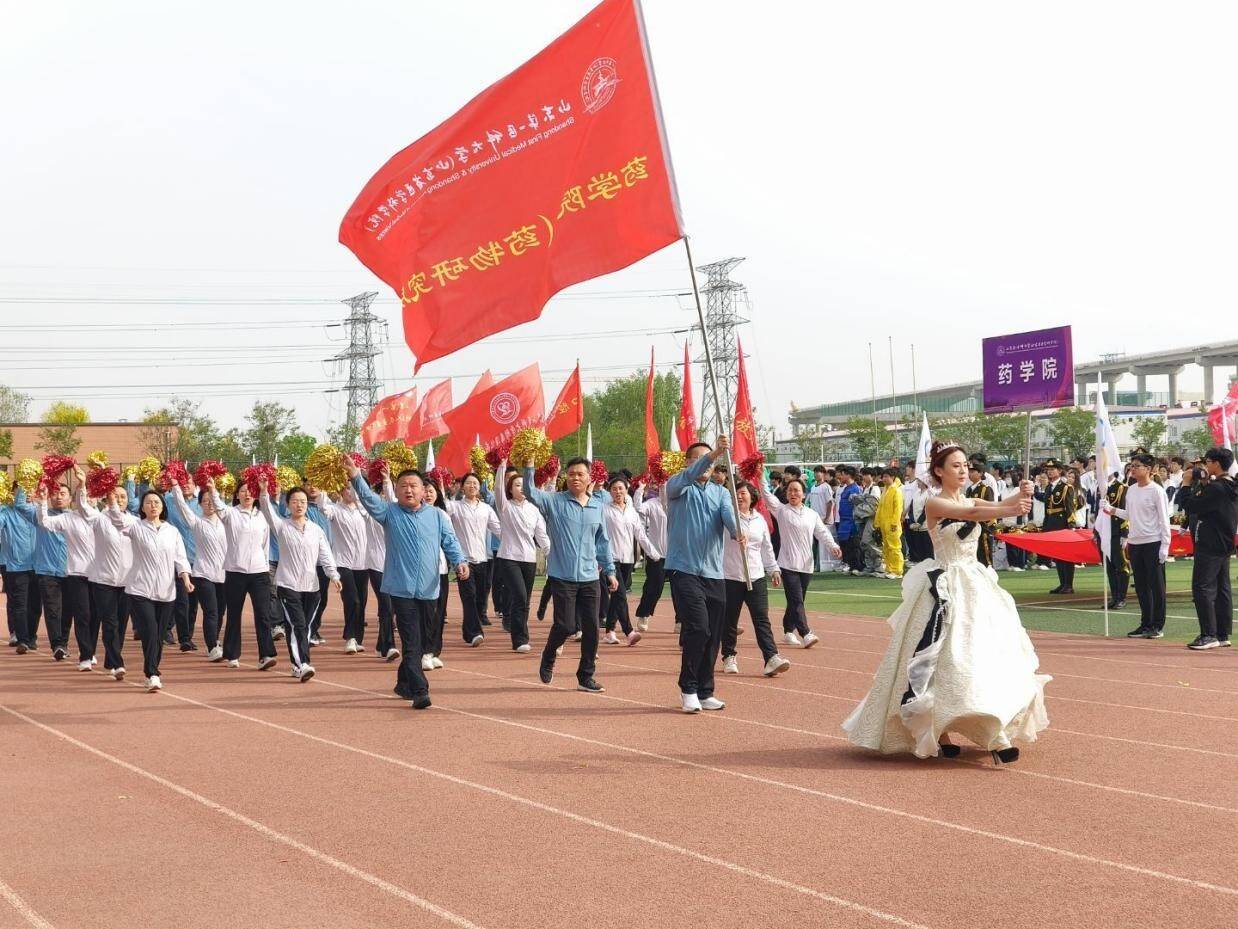 开幕式上,教职工方队步伐整齐、精神抖擞。他们抬头挺胸,步伐铿锵有力,神情飞扬,意气风发,灿烂的笑容如阳光般耀眼。平日里辛勤耕耘在教育一线的他们,此刻充满蓬勃朝气,奋勇争先的精神为开幕式增添了浓墨重彩的一笔。学生代表方队也毫不逊色,他们高举院旗,迈着坚定有力的步伐,喊着“斗志满腔,挥汗赛场,药院之光,锐不可当”的响亮口号,昂首步入会场。队列严整,目光坚毅,翻飞的院旗与初绽的晨光相互辉映,尽显青春的活力与激情,为运动会拉开了精彩序幕。