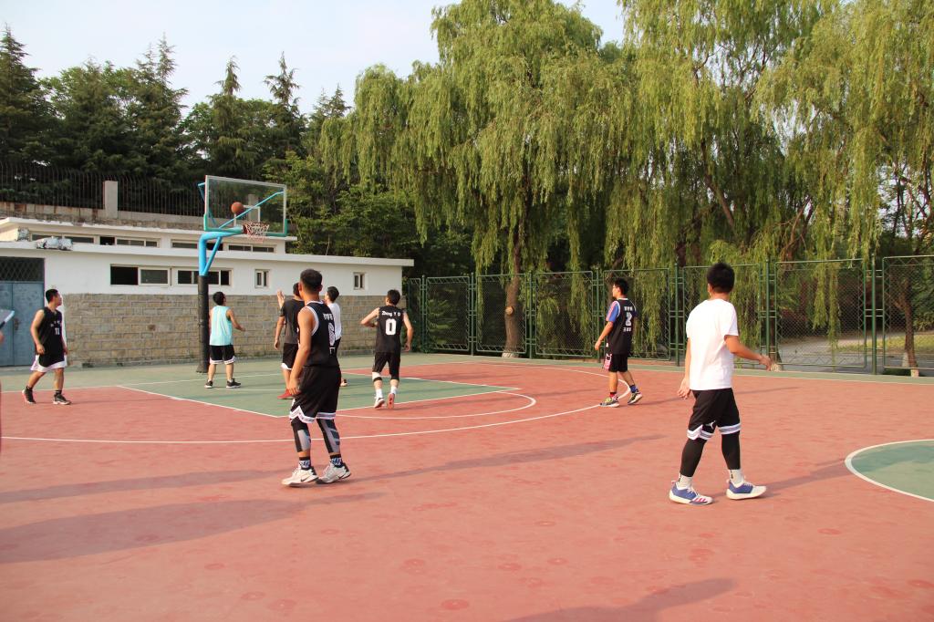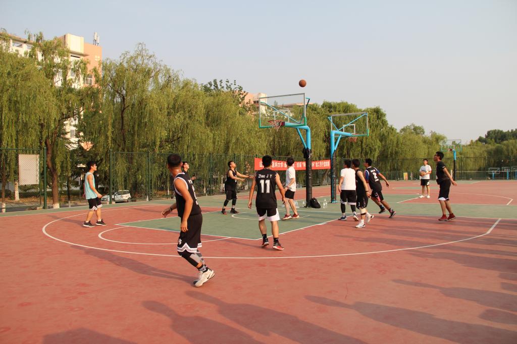 比赛现场气氛热烈,同学们情绪高涨。运动员们你攻我守,配合默契,一次次一气呵成的传球与投篮,一次次近乎完美的进攻与防守,赢得观众们的阵阵喝彩。骄阳阻挡不了他们的热情,夏蝉也为他们歌唱。双方队员有说有笑,气氛融洽,展现了“友谊第一,比赛第二”的优良作风。比赛结束后,在校生队与毕业生队一起合影留念,定格这美好的瞬间。