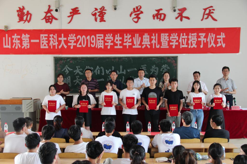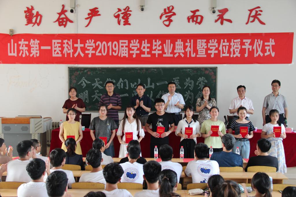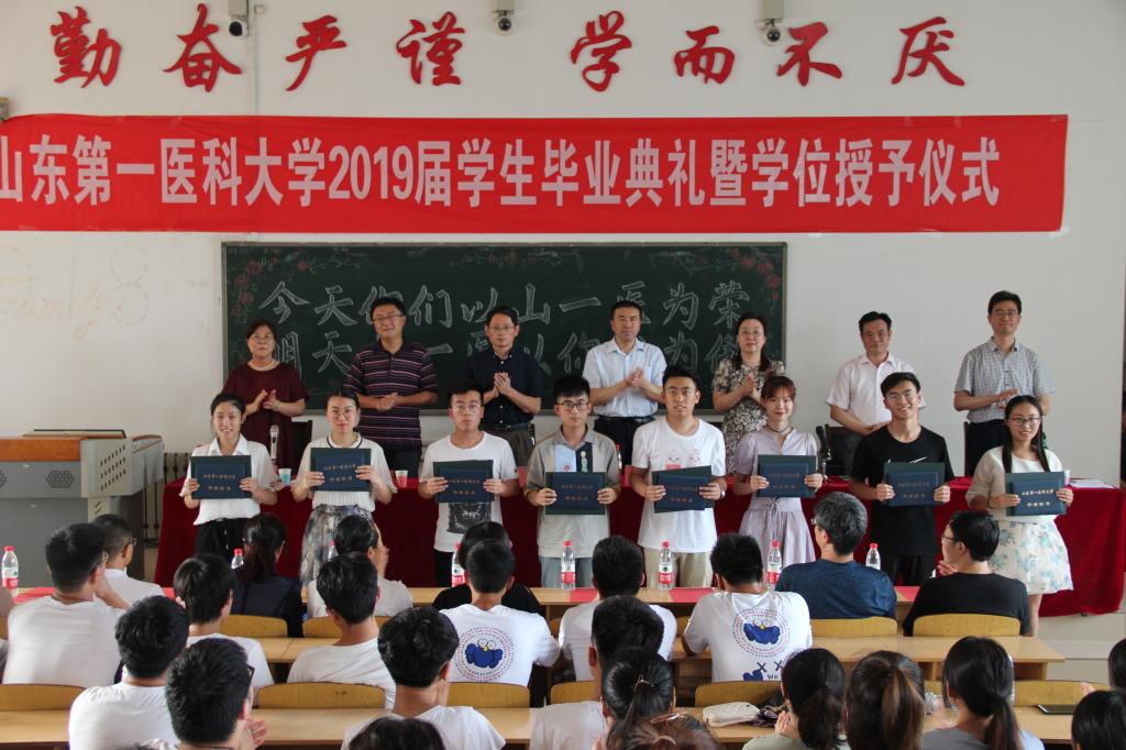 随后,药学院副院长赵晓民宣读了《关于表彰2019届优秀毕业生的通报》,毕业生代表上台领取毕业证书和学位证书,校级和省级优秀毕业生代表上台领取荣誉证书。