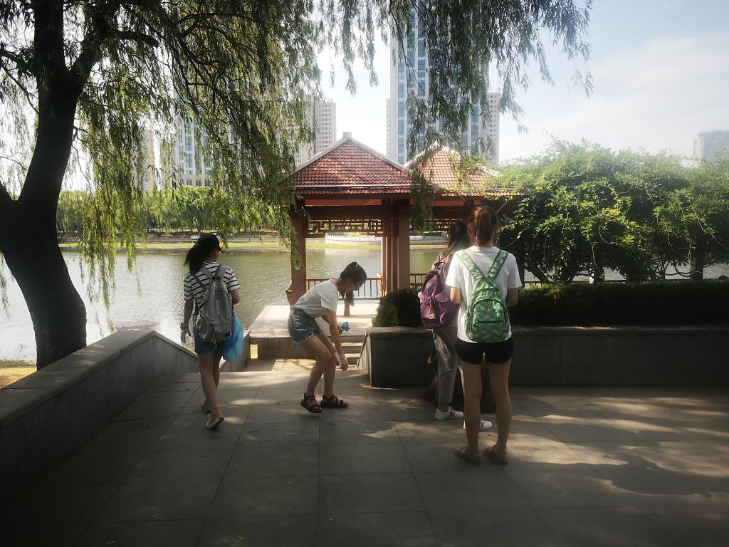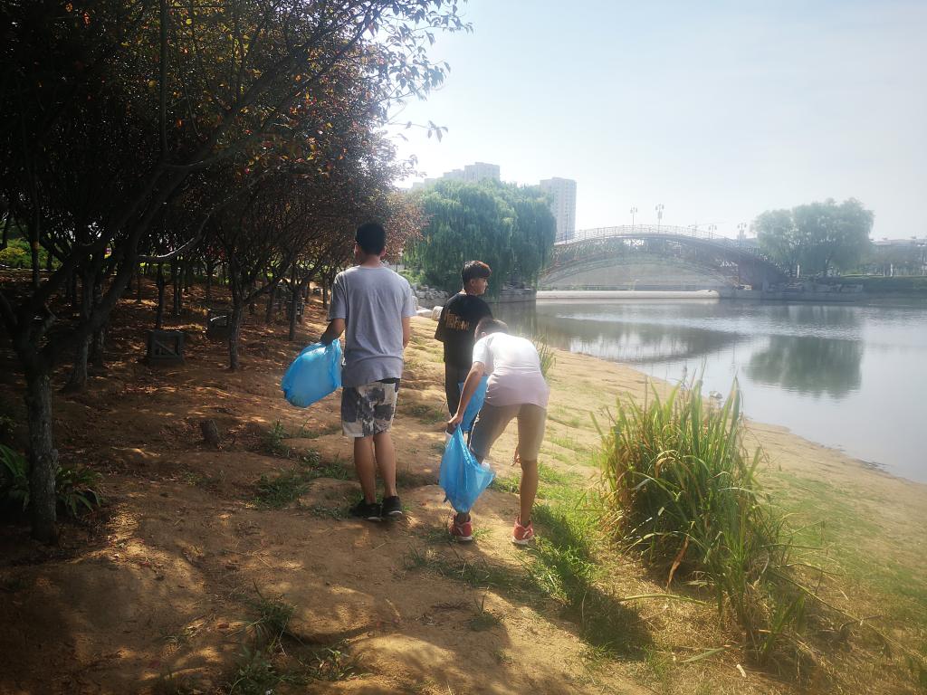 早上8点,学员们准时在校门口集合,在活动负责人的带领下,学员们首先来到研究生公寓,捡拾垃圾、清理公寓楼梯及公寓外围地面。随后,学员们步行前往凤凰湖公园进行美化活动。学员们兵分几路,手持垃圾夹、扫帚、垃圾袋等工具,对公园内的烟头、纸屑、饮料瓶等垃圾进行了集中清理。尽管烈日炎炎,大汗淋漓,学员们依旧热情高涨,干得热火朝天,兴致十足。一个多小时后,学员们提着满袋的垃圾到达集合地点,清扫公园已顺利完成,学员们收获满满。