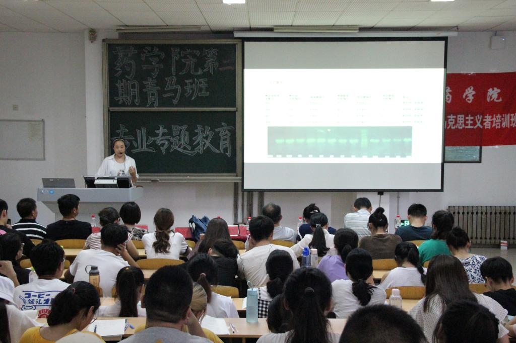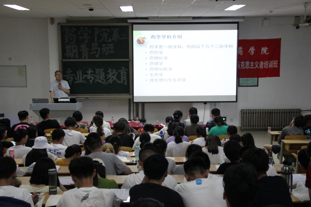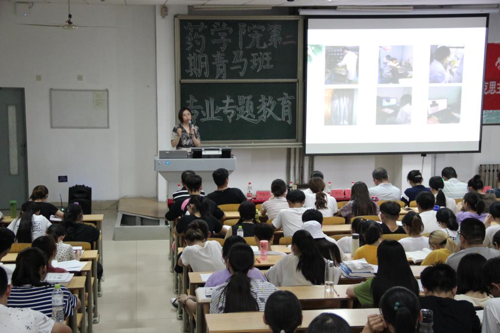 为了加深青马班学员们对专业知识的了解,提高学习兴趣,7月3日下午,药学院于教学南楼C1002召开了第二期青马班专业专题教育大会,本次大会由团总支书记张萌老师主持,党委副书记张鸣凤、各教研室教师代表、全体辅导员、全体青马班学员参加了此次大会。