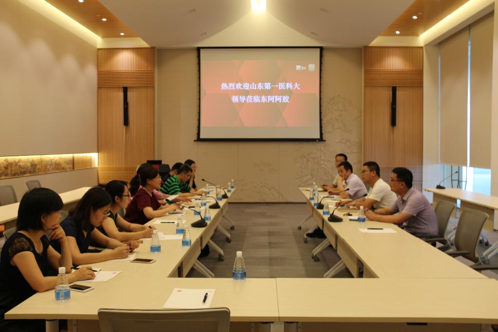 随后,教师们与企业领导们在公司会议室召开了校企合作座谈会。东阿阿胶股份有限公司中药研究所副所长张淹介绍了阿胶的发展历程、基本概况和未来发展趋势,深入阐述了企业理念和研发优势;人力资源部总经理王帅则表示希望加强与我院的合作交流,积极开展工作,拓展新思路、新方法。药学院党委副书记张鸣凤表示,希望通过此次座谈会,了解企业需求及发展理念,推进学生培养、专业建设、教学与实验结合,共同协商合作,实现一举多赢。各教研室主任就共建实验室、学生实习、课题开展、校企联合培养高素质人才、人才招聘等问题展开了深入交流和详细讨论。
