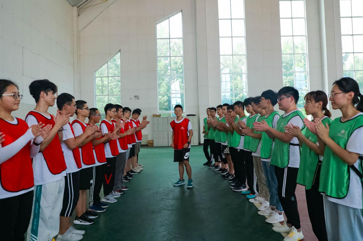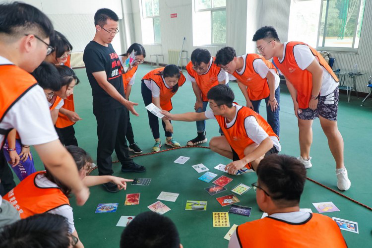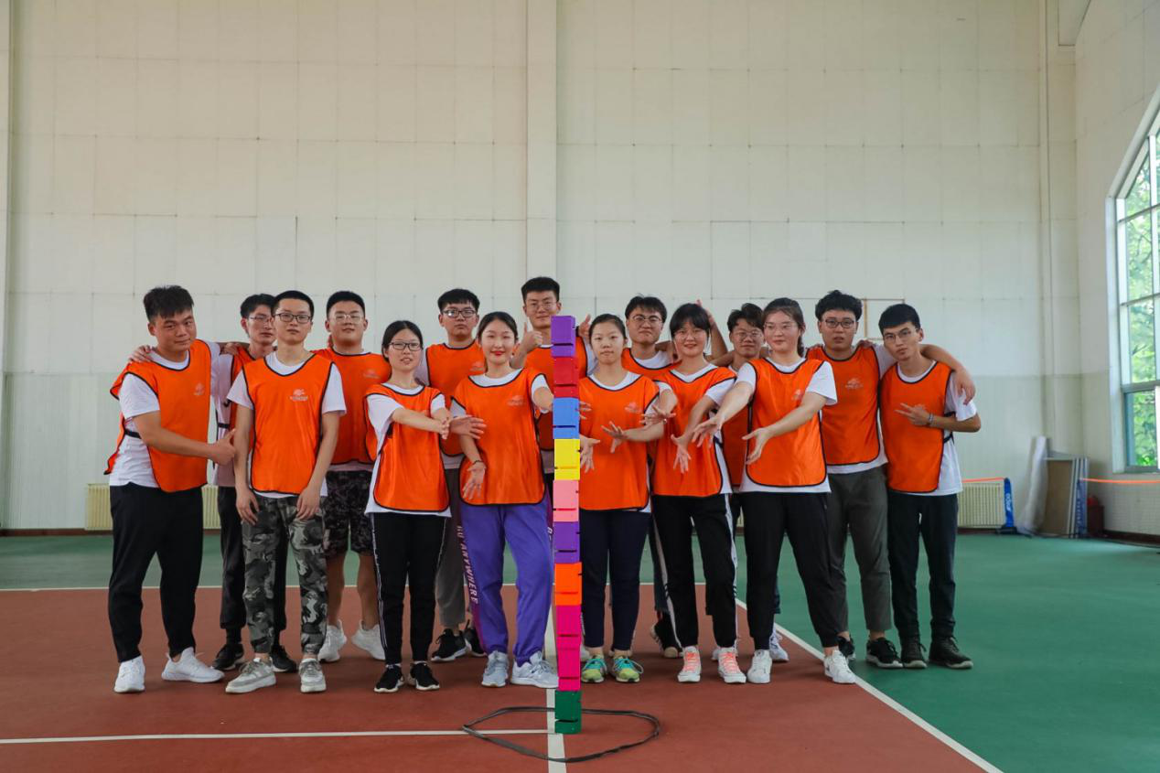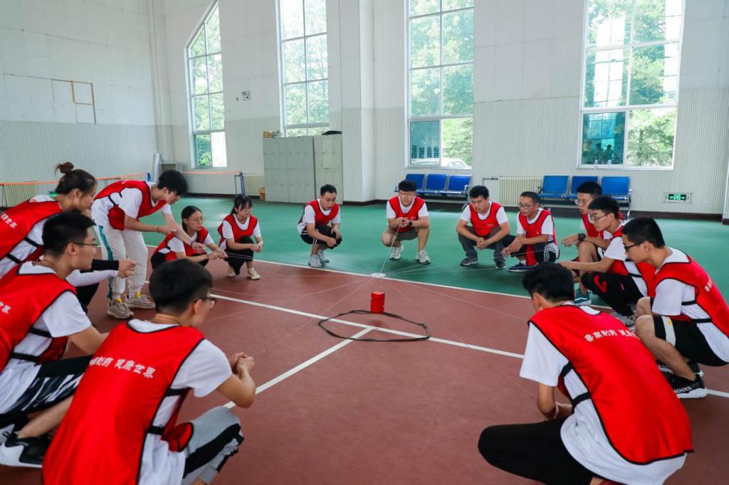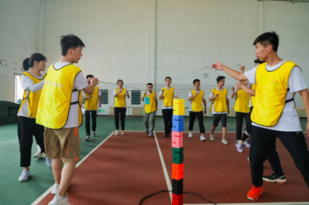 首先,学员们被随机分为四个队,各队推选出核心成员,在确定队长、队形、队旗、队名、队歌、口号之后,开展了“一元五毛”、“合力筑塔”、“急速60秒”、“群龙取水” 四个拓展项目。