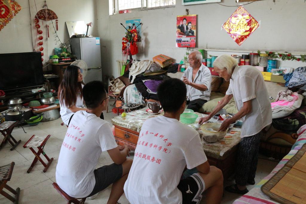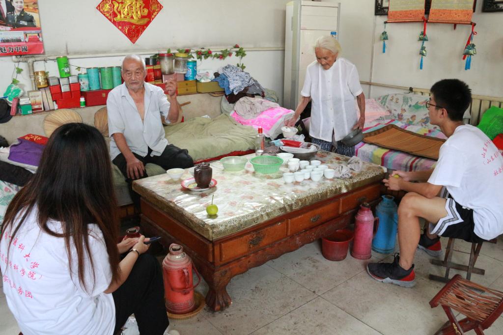 8月13日,队员们怀着尊敬与期待的心情,来到老党员家中进行访问。老党员认真又怀念地回忆他们年轻时为理想奋斗的故事,解答学员们就改革开放、人生信念、社会现状等方面所提出的问题。老党员教导学员们要坚持吃苦耐劳的精神,现场气氛十分融洽。随后队员们走访了当地的孤寡老人及老党员,与老人们交流聊天,回忆往昔的峥嵘岁月,为老人们清扫整理院落,帮瓜农干农活,并普及垃圾分类和安全用药的知识,感受老党员们伟大的人格魅力和为民服务的热忱之心,现场氛围其乐融融。