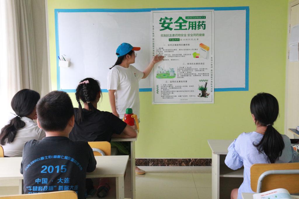 第四阶段,实践队员们来到泰安市道朗镇拉马洼村开展“七彩校园,爱心支教”活动,时间虽短,支教团队却与孩子们建立了深厚的友谊,队员们为孩子们组织形式多样的课堂教学,以日常课堂教学为基础,根据学生需求制定教学内容,并通过演讲、座谈会、张贴海报等方式为孩子们传授“禁毒防艾”、安全用药等相关知识;通过PPT演示和现场教学等方式为孩子们教授中草药知识,激发孩子们对中草药和自然科学的热爱,通过简单传授防火避震自救知识,提高孩子们自我保护技能。最后,队员们走访了当地的孤寡老人及老党员,与老人们交流聊天,为老人们清扫整理院落,回忆往昔的峥嵘岁月,帮瓜农干农活,并普及垃圾分类和安全用药的知识,感受老党员们伟大的人格魅力和为民服务的热忱之心,现场氛围其乐融融。