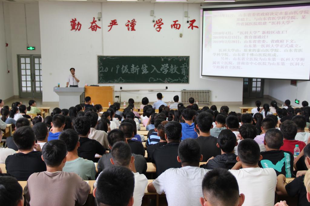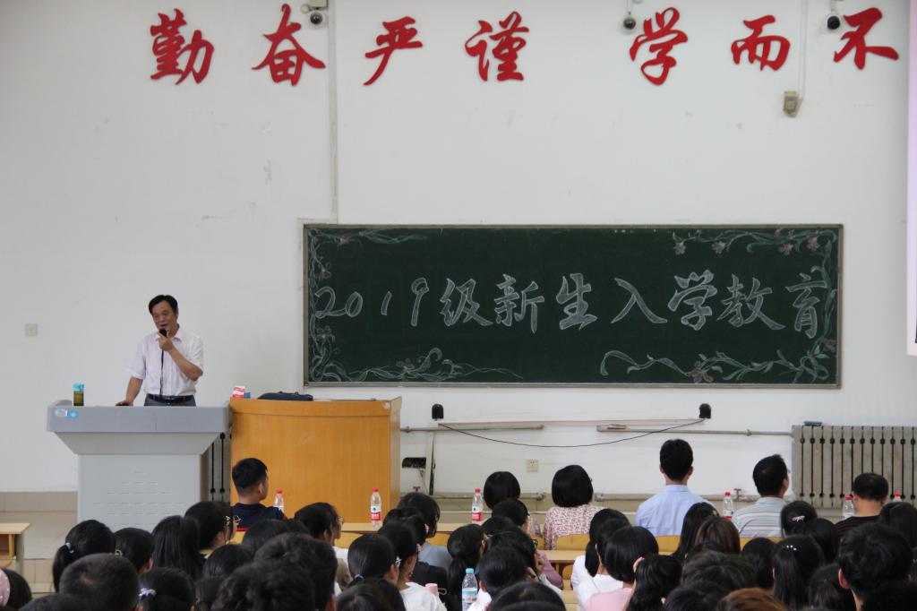 王德才院长首先发表了新生致辞,对新生的到来表示了热烈欢迎。紧接着他详细介绍了学校的发展历程,重点强调了我校的办学历史、办学目标、办学定位、校区分布、未来规划以及校风、校训等内容;随后王院长向同学们介绍了药学院的各类特色专业和重点学科、师资力量、课程体系、学院现状、毕业生去向及就业方向;最后,他就学习方面针对新生易犯的问题进行了指导,强调了大学学习中自我管理、自我约束的重要性,希望同学们能转变学习方式,由高中的被动学习变为主动出击,以更加优异的成绩回馈家长和社会。