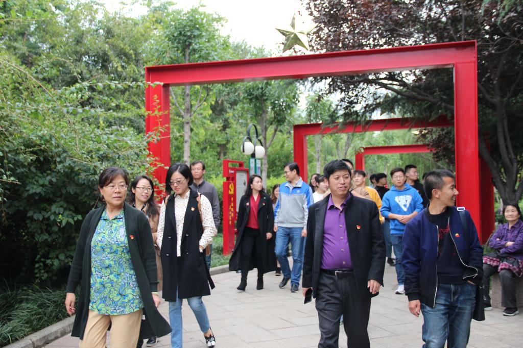 最后,各位老师及学生党员前往泰安市南湖党建文化主题公园进行参观,并合影留念。一张张图片、一段段文字让大家身临其境,感受着老一辈人在极其艰苦的环境下,自力更生、艰苦奋斗的精神,激励同学们努力学习,积极向上。大家纷纷表示,感谢感恩革命先烈的奉献和牺牲,是他们为我们换来今天的美好生活,我们要不忘初心,为实现伟大的中国梦奉献力量。