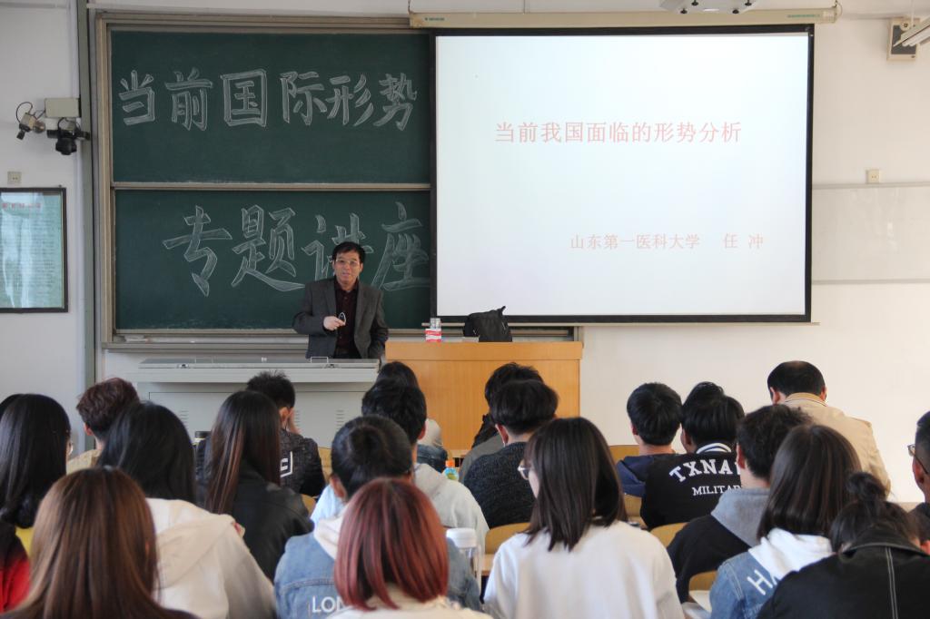 为使药学院青马班学员们坚定马克思主义理想信念,提高自身政治觉悟和思想修养,10月15日下午,药学院于教学南楼C2022召开了青马班专题讲座,本次讲座由马克思主义学院形势政策教研室主任任冲教授主讲,药学院教师党员代表及青马班全体学员参与了此次讲座。