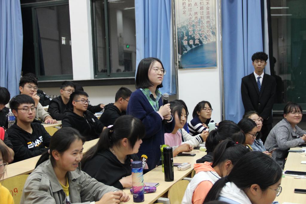 首先,2019级新生代表赫子璐、宋昊哲同学进行了发言,与同学们交流了开学以来的收获和对大学生活的理解,并提出了大一新生所遇到的问题。