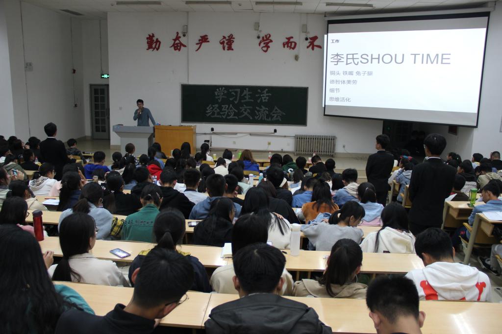 接下来,来自2017级的四名优秀学生代表主要从学习和生活两方面与新生分享了自己的经验,并结合精彩的PPT展现了他们丰富多彩的大学生活。