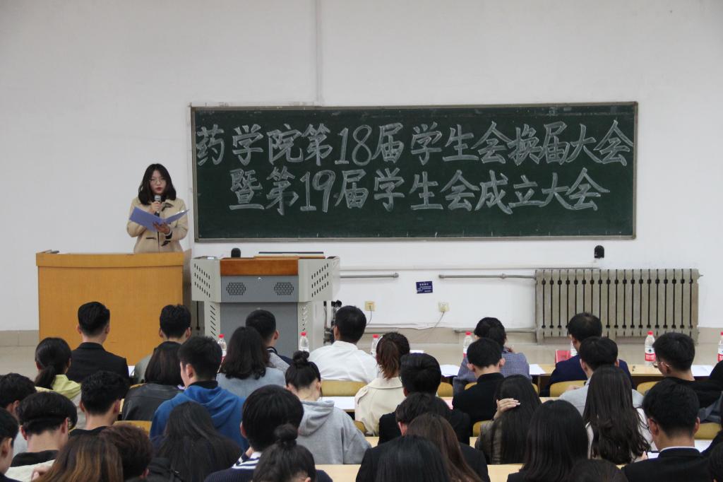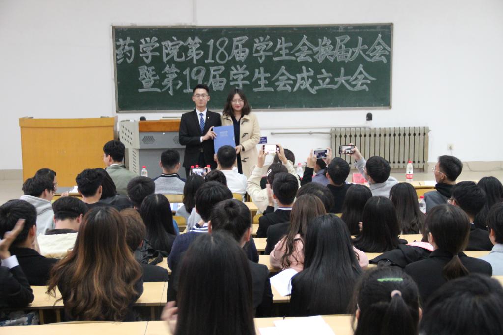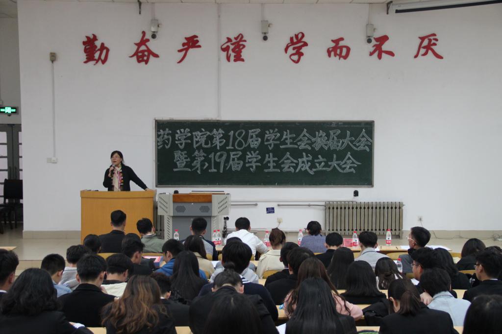 10月24日下午,药学院于教学南楼C1014举行了第18届学生会换届大会暨第19届学生会成立大会。药学院党委副书记张鸣凤、学团全体老师、第18届学生会常委成员和优秀干事及第19届学生会全体成员参加了本次换届大会。