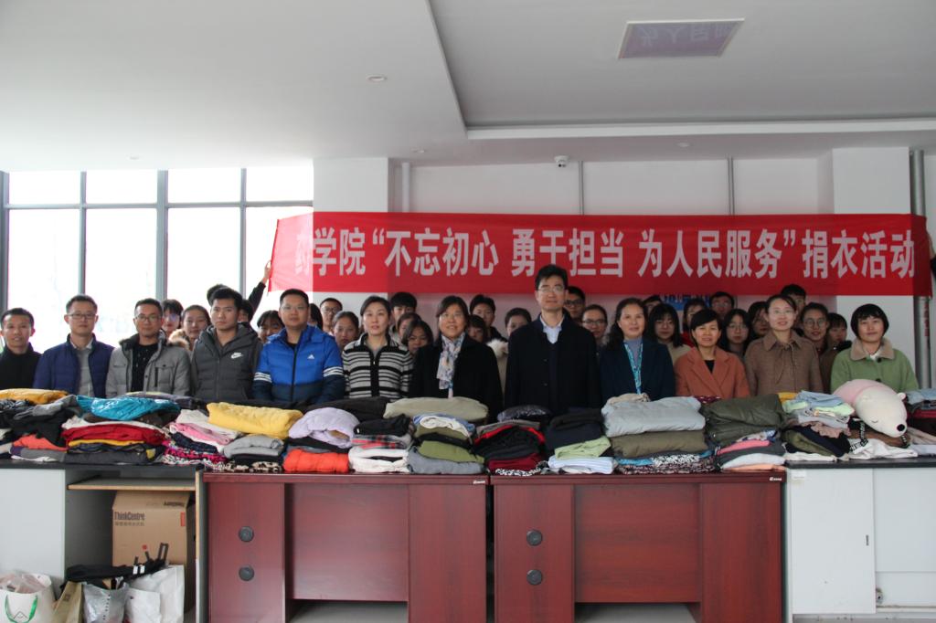 为弘扬中华民族扶贫济困的优良传统,提高广大师生的公益意识,营造良好的校园文化风气,11月21日下午,药学院于医学综合实验楼举办了以“不忘初心,爱心捐助”为主题的第九届“衣加衣”爱心捐赠活动。药学院副院长赵晓民、党委副书记张鸣凤,全体辅导员和各教研室教师代表及学生代表参加了活动。