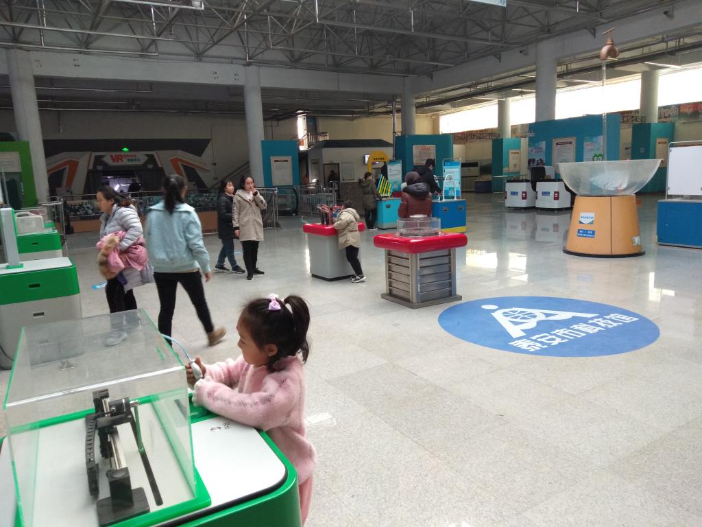 随后,志愿者们被分成两组,一组被带到VR虚拟电影展区,另一组留在大厅展区。在VR展区,学员们协助工作人员维持展区秩序,带领小朋友们感受虚拟世界的魅力;在大厅展区,学员们告知游客们各种展品的操作方法,并耐心地回答游客提出的问题。