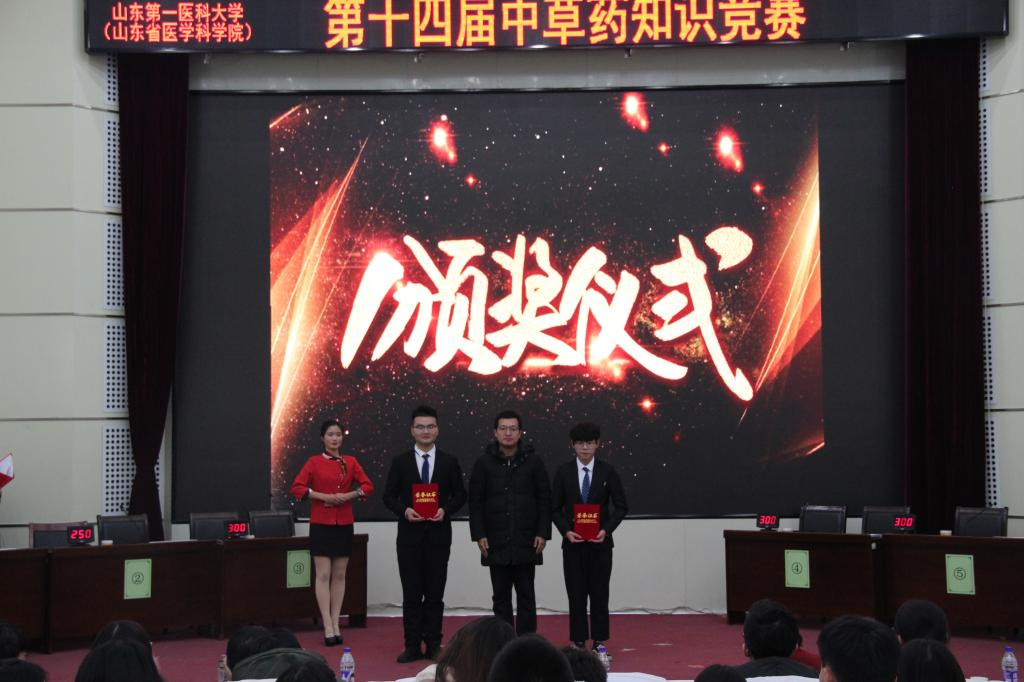 在如火如荼的比赛过程中,还穿插着娓娓动听的歌曲《我爱你中国》和婀娜多姿的舞蹈《缘分一道桥》,激烈的比赛让场下的观众意犹未尽,曼妙的歌舞更是让人余味无穷。最终,经过紧张激烈的角逐,“灵芝”队获得一等奖,“药你好看”队、“生科”队获得二等奖,“放射石决明”队、“薄荷”队和 “王不留行”队获得三等奖。比赛最后,评委老师为选手颁奖并合影留念。