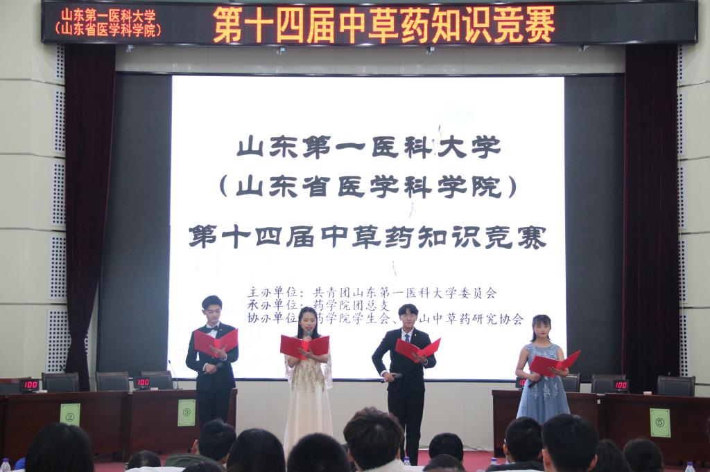 为弘扬中医药文化,传承中医药知识,12月20日晚,药学院于图书馆报告厅成功举办了第十四届中草药知识竞赛。校团委李启明老师、药学院党委副书记张鸣凤、中药学教研室副主任孙立彦副教授和段瑞老师、药理学教研室侯雪芹老师及全体学团老师出席本次比赛。
