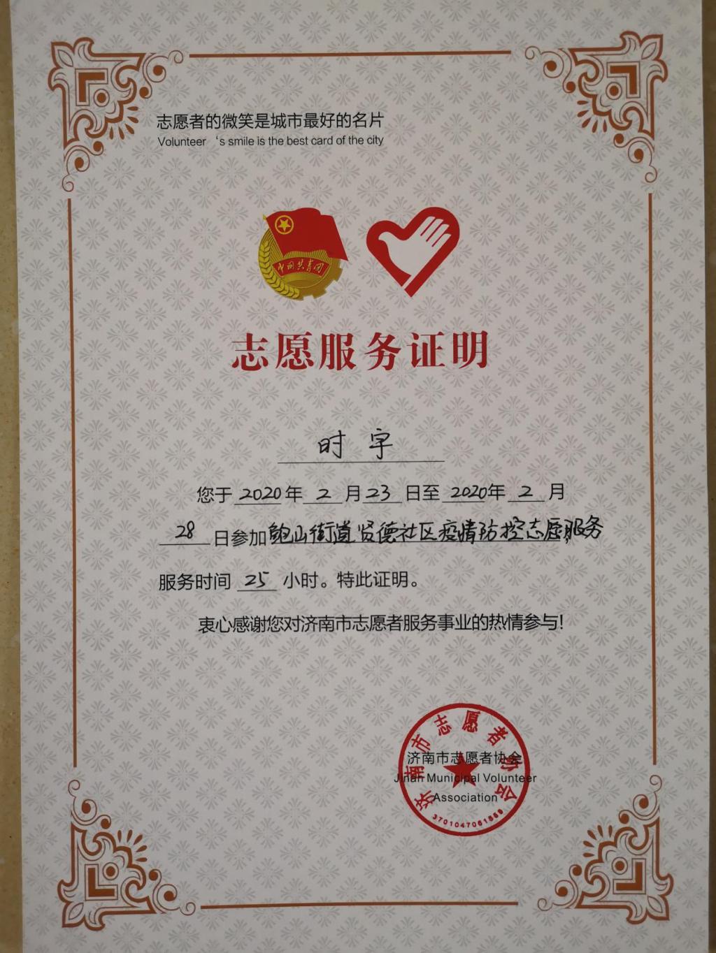 “疾风知劲草,烈火炼真金。”越是关键时刻越能检验党员的责任感与使命感。面对疫情,2018级临床药学1班的预备党员时宇同学,在了解到社区防疫执勤岗位人手短缺的情况后,立刻向济南市历城区鲍山街道办事处报名,参与到社区疫情防控工作中。在正式“上岗”成为防疫志愿者后,时宇同学对待工作认真负责,为确保社区住户信息的准确性,她对社区500多名住户的信息进行一一录入,实现社区住户信息准确可查,她认真负责的态度得到社区工作人员的一致好评;同时,她还积极响应党中央号召,参加自愿捐款活动。她说:“虽然我还只是一名预备党员,但在疫情防控的关键时期,党员能做到的,我也一样能做到!能够在没有硝烟的战争中贡献自己的一份力量,我觉得无比骄傲,以后我要好好学习医药专业知识,为社会做更多的事情。”