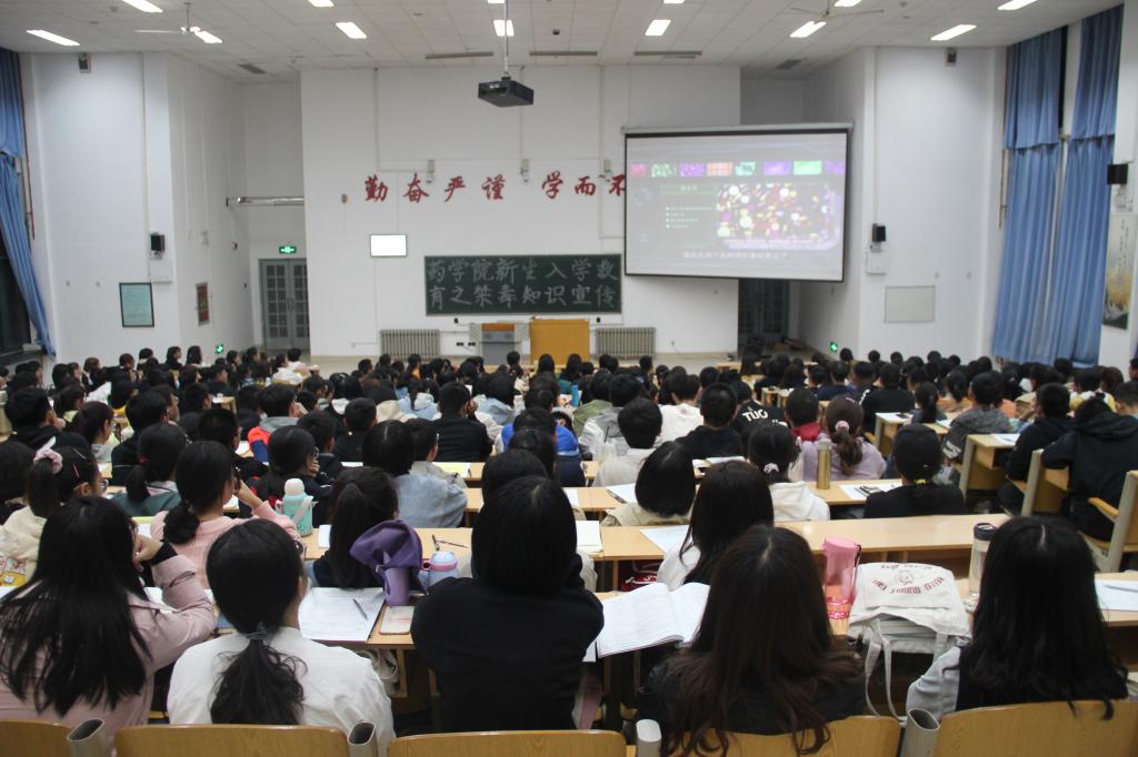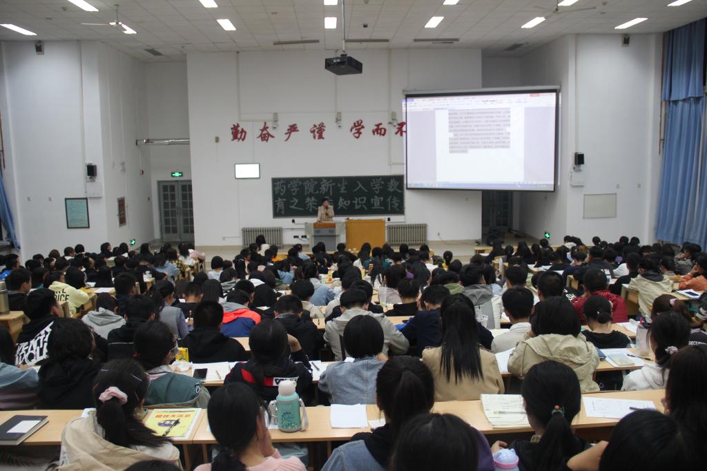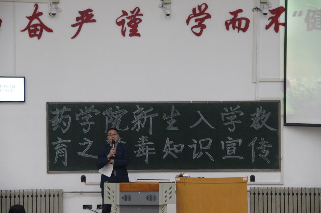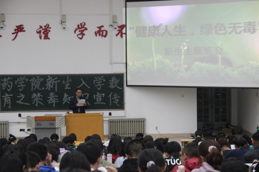 为了提高新生的识毒、防毒、拒毒意识,增强自我保护能力,药学院于10月8日晚在教学南楼C4013召开了以“健康人生,绿色无毒”为主题的新生入学教育之禁毒知识宣传大会。药学院党委副书记宋洪涛,新生辅导员彭曼曼、叶彦艳老师出席本次会议。药学院2020级全体新生参加本次大会。