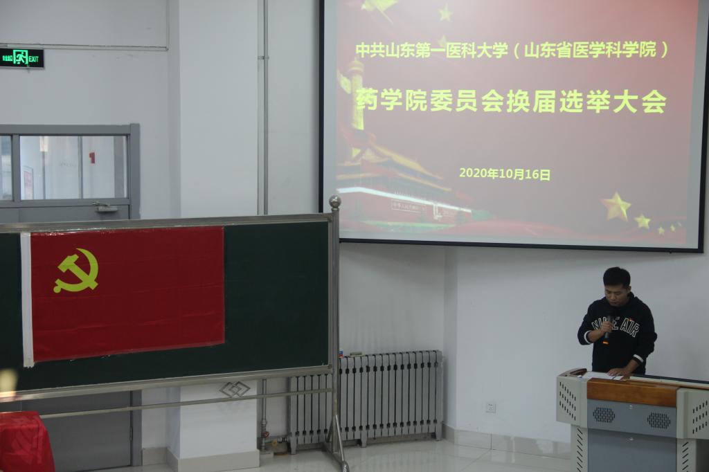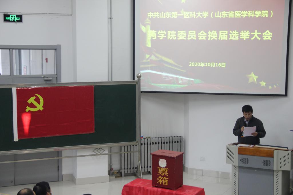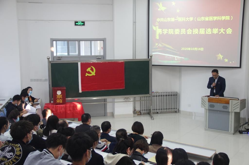 10月16日,药学院党委换届选举大会于医学综合实验楼A132举行。药学院党委书记史仁玖、院长张继国出席会议,药学院全体师生党员参加会议,大会由党委副书记宋洪涛主持。
