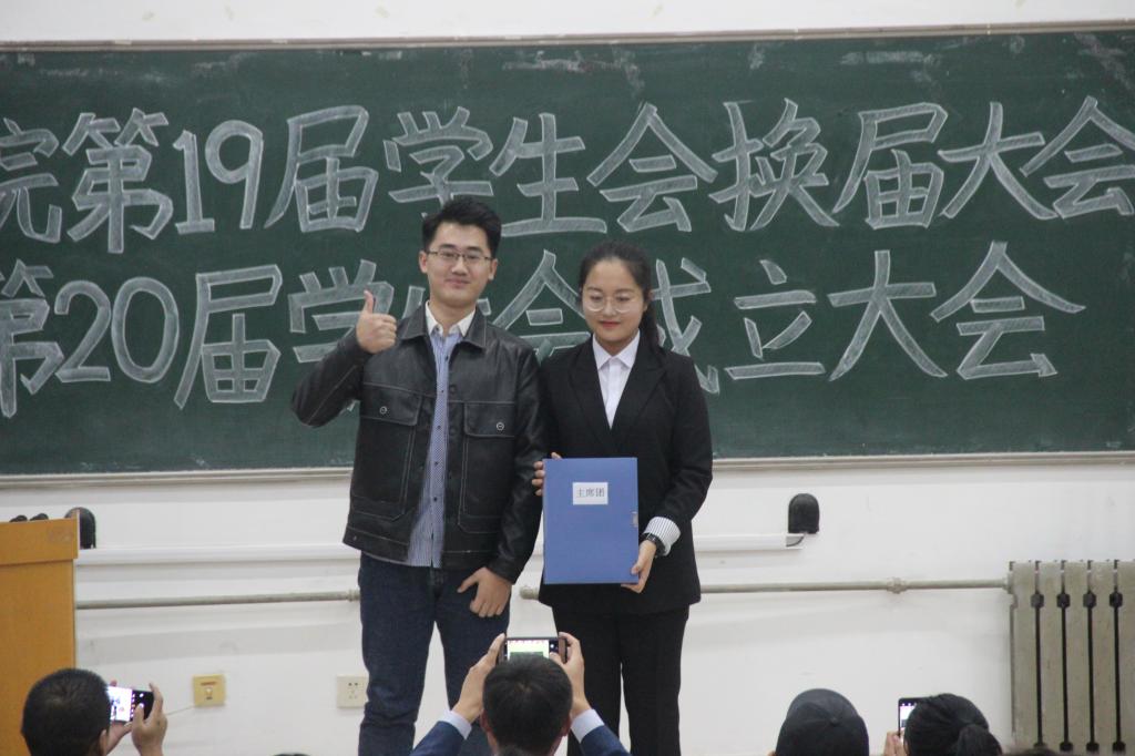 第19届学生会主席李洪博与第20届学生会主席时宇完成交接。