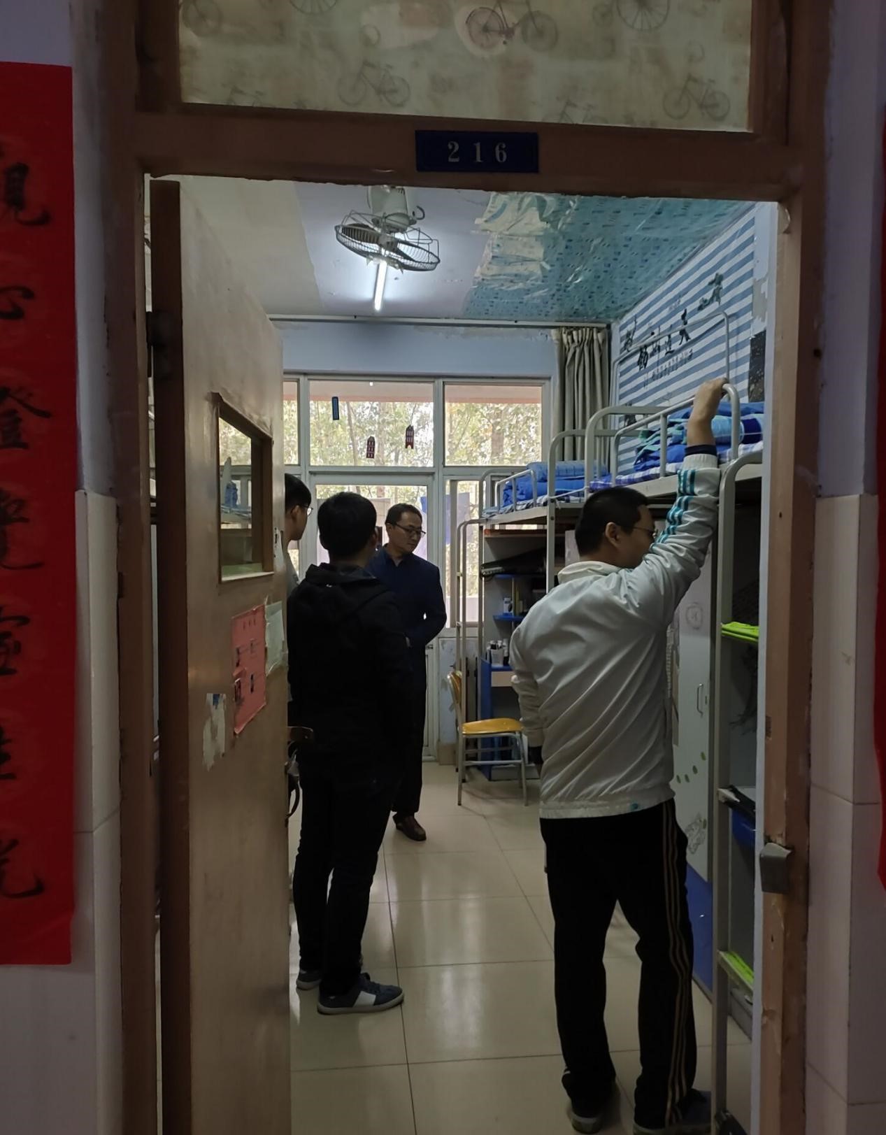 检查中,宋书记及各位辅导员老师本着严谨认真的态度,仔细地检查了学院所有的宿舍,对每间宿舍的用电防火安全、室内阳台卫生、床上桌面物品摆放、是否锁门等问题按照统一的标准进行检查,并要求学生会干事进行认真记录和拍照,尽快将检查结果通报给同学们。