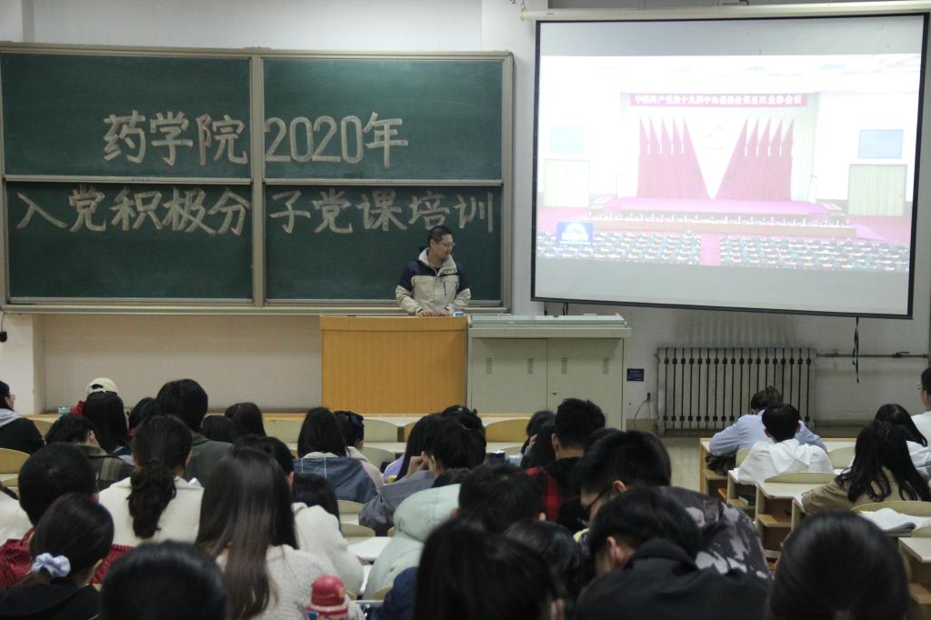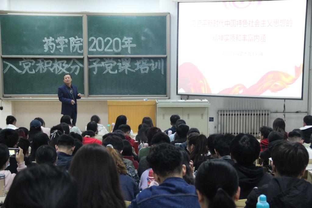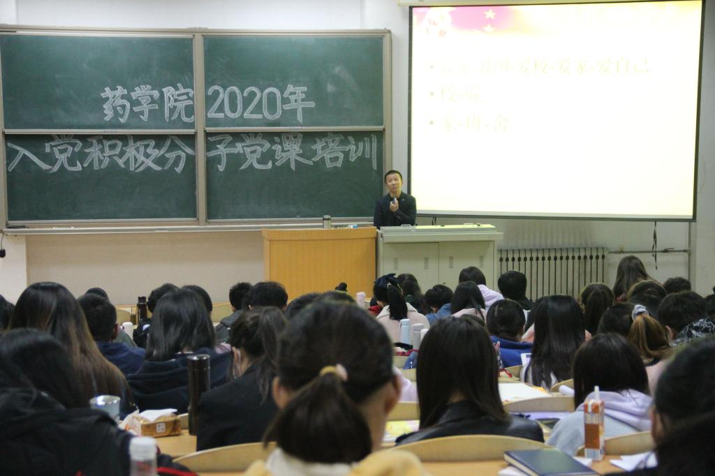 为进一步加强对入党积极分子的培养、教育和考察,切实提高药学院入党积极分子的政治素质和理论修养,药学院党委近期在教学北楼A3018教室举办了2020年入党积极分子培训班,药学院党委书记史仁玖、党委副书记宋洪涛及辅导员老师分别为137名入党积极分子进行了授课。