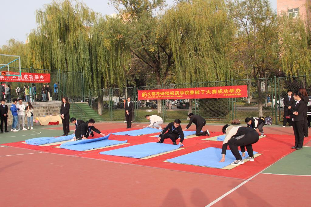 为进一步增强学生文明卫生意识,养成良好生活习惯,形成文明宿舍氛围,11月1日下午,药学院于老体育场举办叠被子大赛。此次活动由山东第一医科大学药学院团总支主办,药学院学生会卫生部承办。药学院党委副书记宋洪涛,各辅导员老师及药学院学生会主席团成员等到现场为活动加油助威。