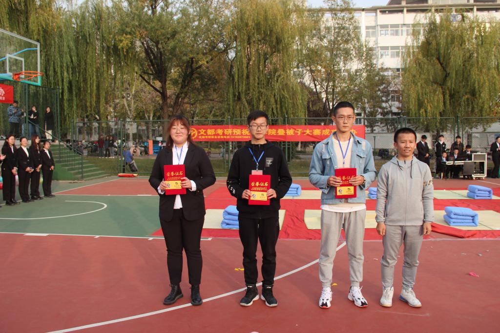 最后,宋书记和贾老师分别与大赛获奖选手合照留念,全体出席嘉宾合影留念,叠被子大赛圆满结束。