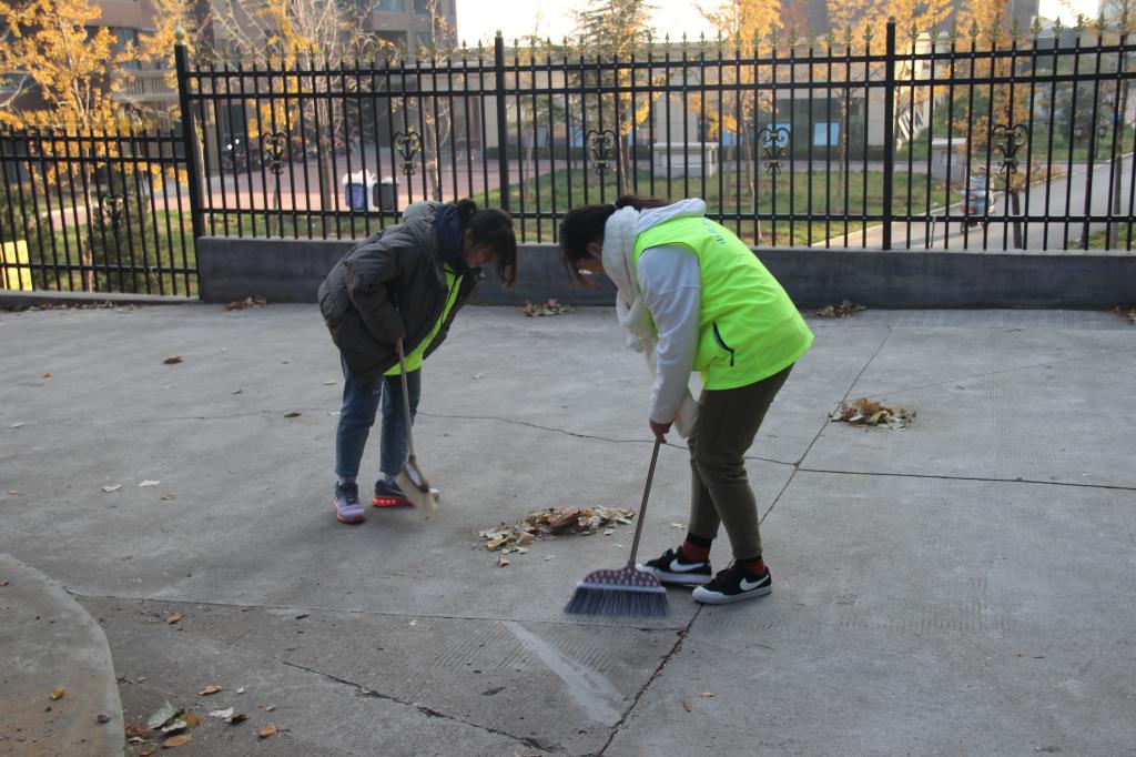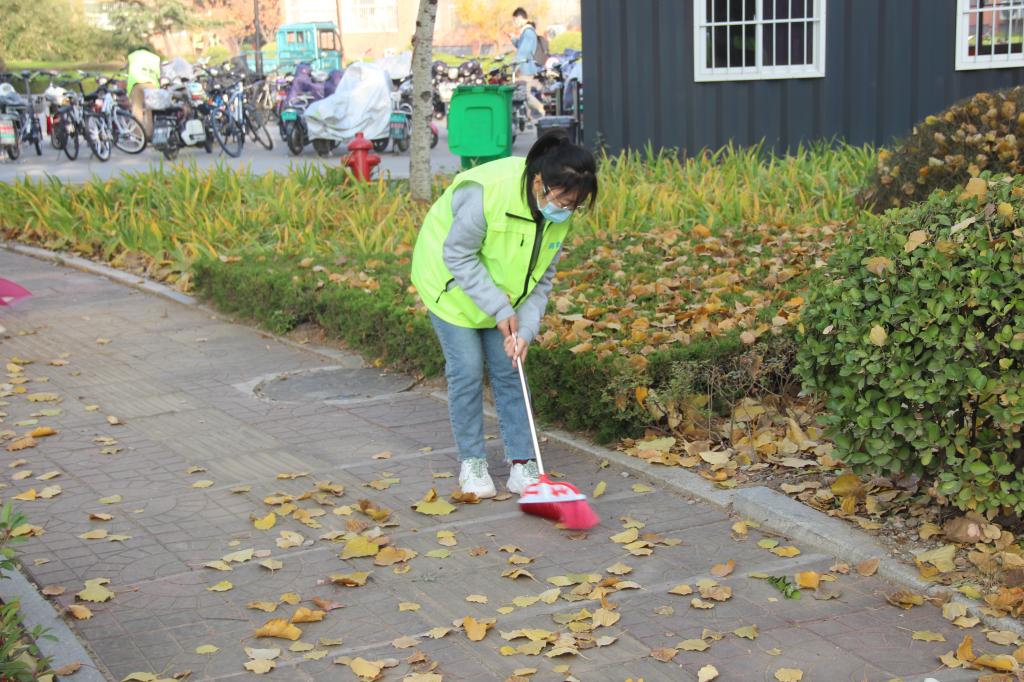 随后,志愿者们在完成自己区域清扫任务后,都纷纷来帮助落叶“重灾区”的志愿者们尽快完成工作。清扫快结束时,志愿者们抓紧清理边边角角,丝毫没有懈怠。