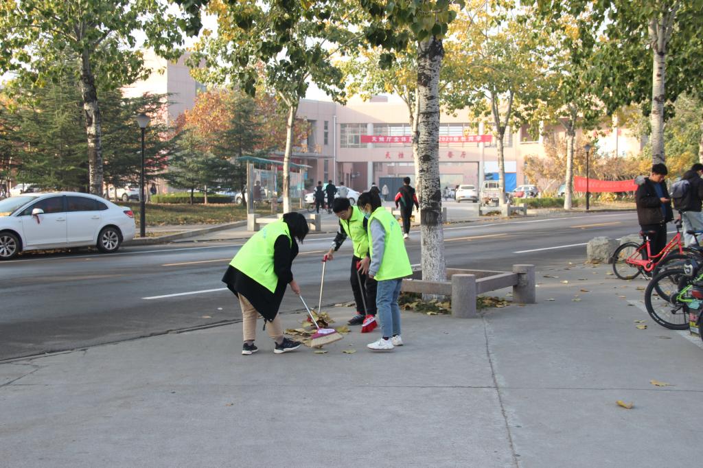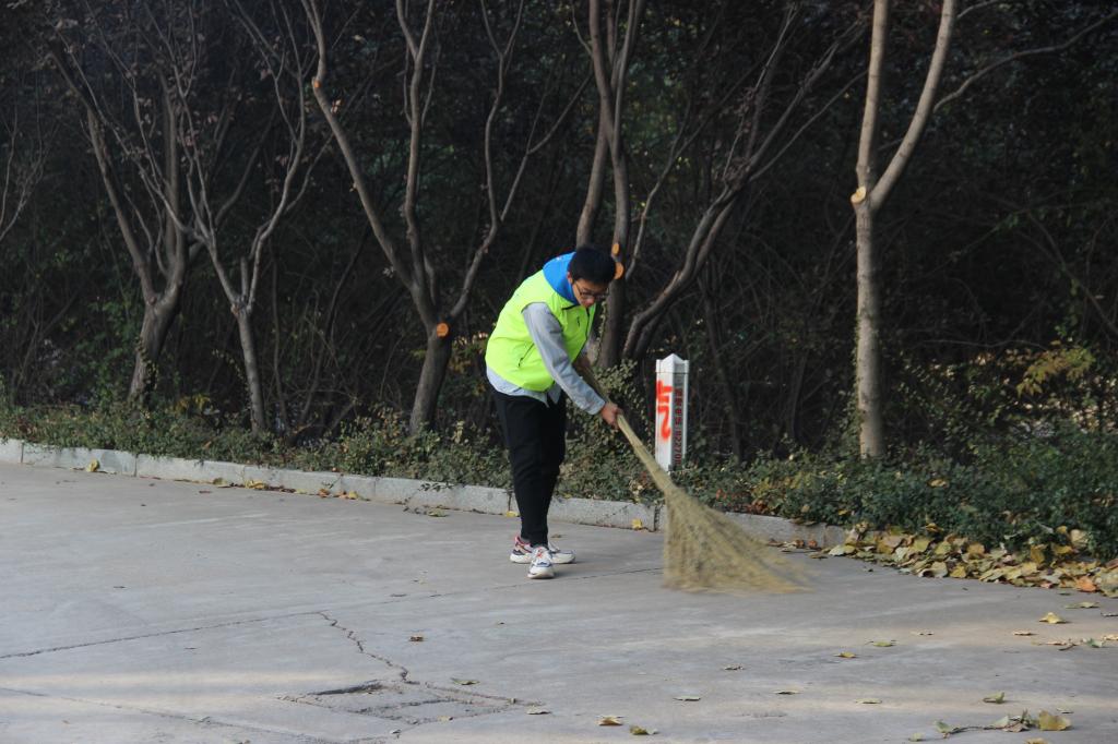 上午八点,志愿者们准时来到松竹园集合,在负责人的带领下,志愿者们被分为五组,分别在五个区域清扫落叶。落叶在秋风中簌簌落下,给环卫工人增加极大工作负担。落叶虽小,数量却十分庞大,志愿者们清扫起来极为不易。在清扫过程中,志愿者们将落叶聚集成堆,一摞摞完成清理。在清扫落叶、美化校园过程中,志愿者们不喊苦不叫累,默默奉献。