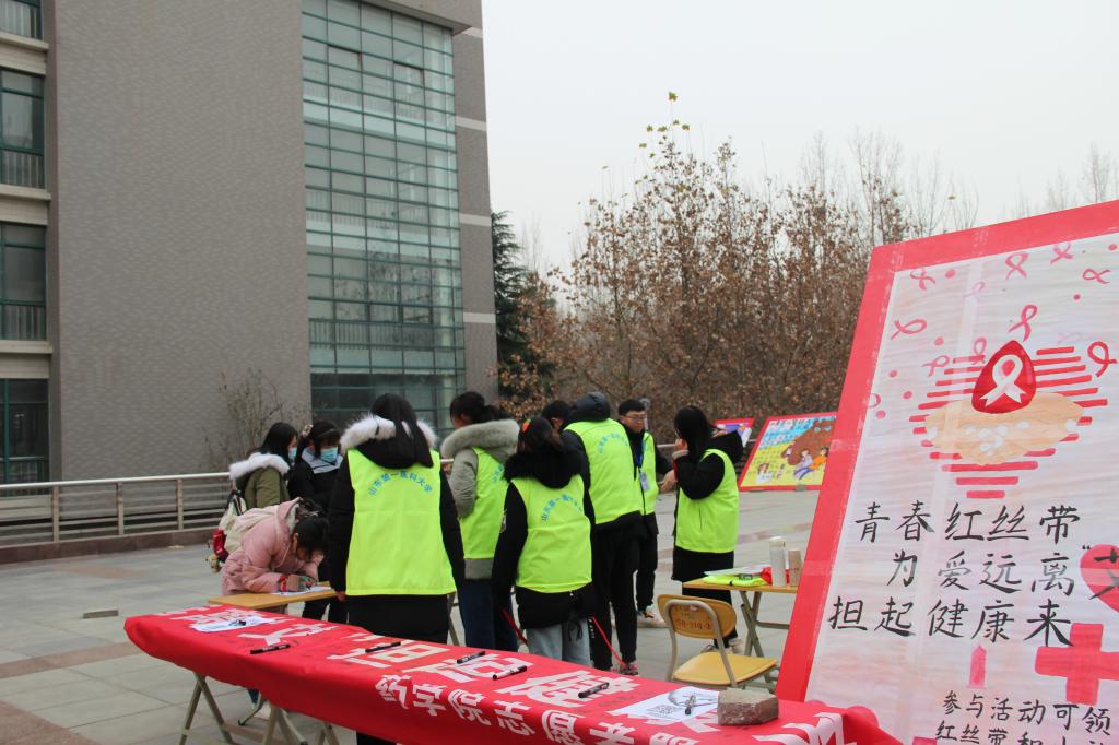 为提高大学生对艾滋病的认识程度,增强自我保护意识,提高预防艾滋病的能力,增强大学生社会责任感,11月29日,药学院于教学北楼AB座之间成功举办“青春红丝带”艾滋病日宣传活动。此次活动由药学院团总支主办,药学院学生会承办。