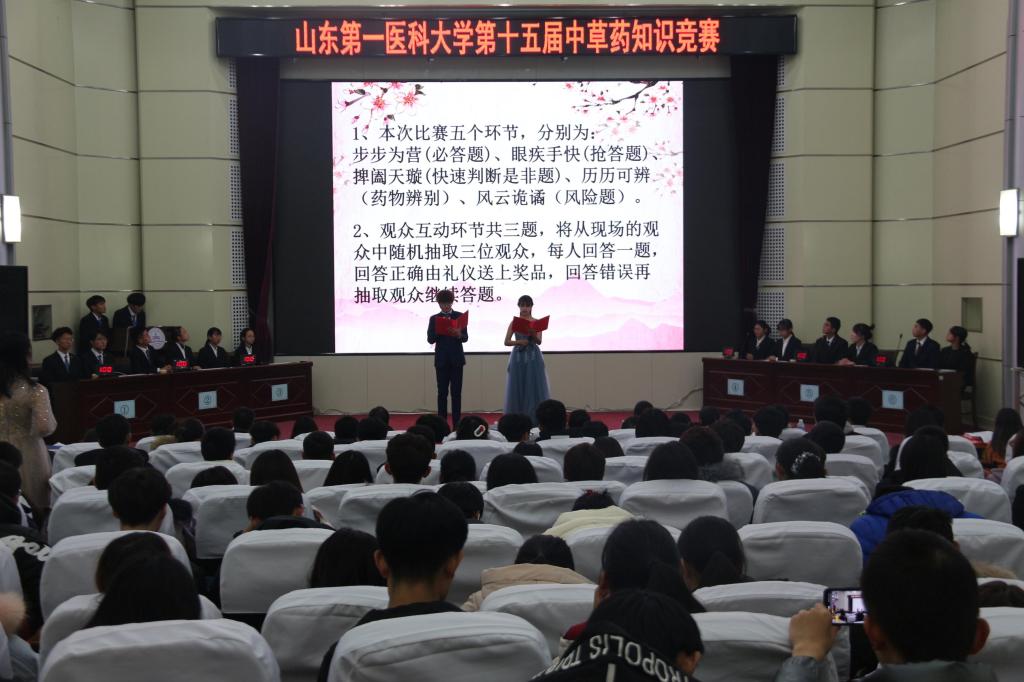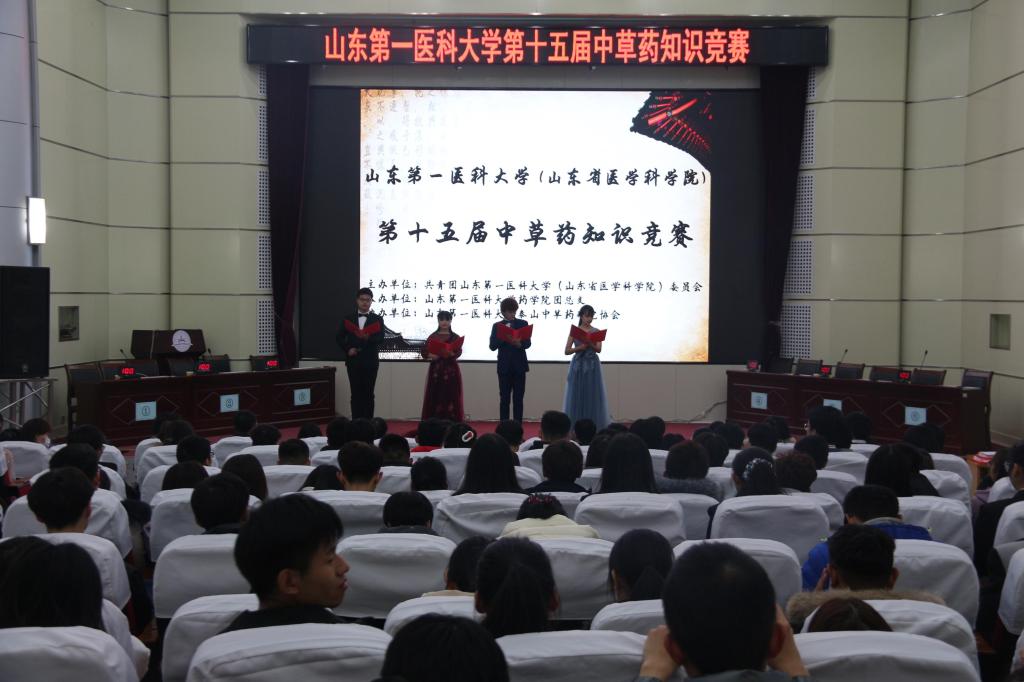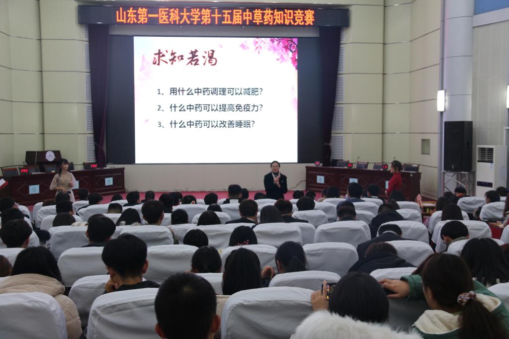 为弘扬中医药文化,领略国药风采,并进一步激发广大师生学习中草药知识的热情,12月1日晚,药学院在图书馆报告厅成功举办第十五届中草药知识竞赛。学生工作部部长华波、校团委副书记和莉、药学院党委书记史仁玖、副院长段桂运、副院长周延萌、党委副书记宋洪涛及全体辅导员老师出席活动,中药学系高红莉教授、曲晓兰副教授、孙立彦副教授和药学实验中心岳路路老师担任比赛评委。本次比赛由校(院)团委主办、药学院团总支、泰山中草药研究协会承办。