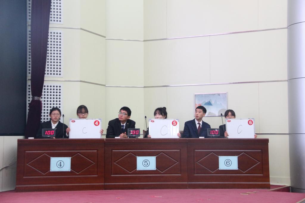 伴随着激情四射的开场舞,大赛拉开了序幕。首先是必答题“步步为营”环节,各组选手沉着应对,从容自若,一时难分伯仲;而紧跟的抢答题“眼疾手快”环节让场上气氛开始紧张起来,一次次激烈的抢答将比赛推向高潮阶段;随后的“捭阖天璇”“历历可辨”环节更是拉开了各代表队的比分差距,评委老师也对选手们的作答进行了相应点评;在观众互动环节,同学们积极热情,跃跃欲试,为比赛增添了一份活跃,评委老师们也对大家询问的热门问题给予了认真详细的解答;最后的风险题“风云诡谲”将比赛带入白热化阶段。