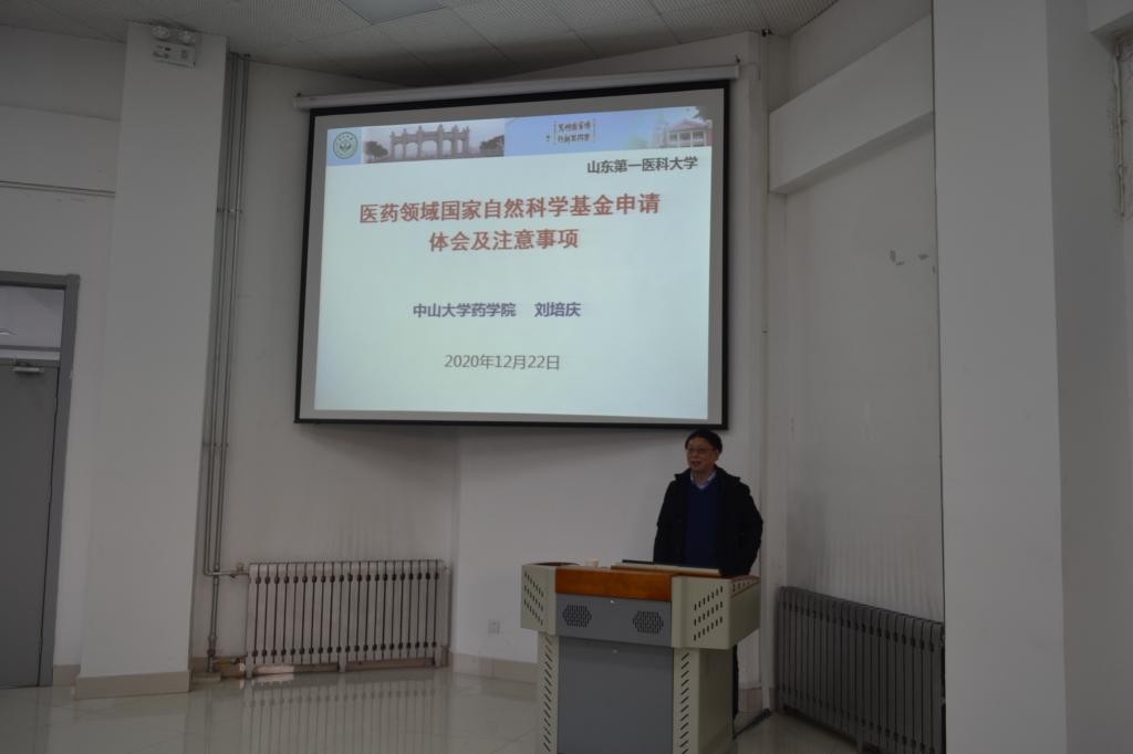 为了更好地组织2021年度国家自然科学基金申报工作,药学院举办第二期山东第一医科大学学术提升计划“创新药物早期成药性及临床前研究”名家论坛,邀请了中山大学药学院刘培庆教授做了题为“浅谈医药领域国家自然科学基金申请策略和注意事项”的专题报告,主要讲解国家自然科学基金面上项目和青年基金的申报注意事项。论坛由周延萌副院长主持。