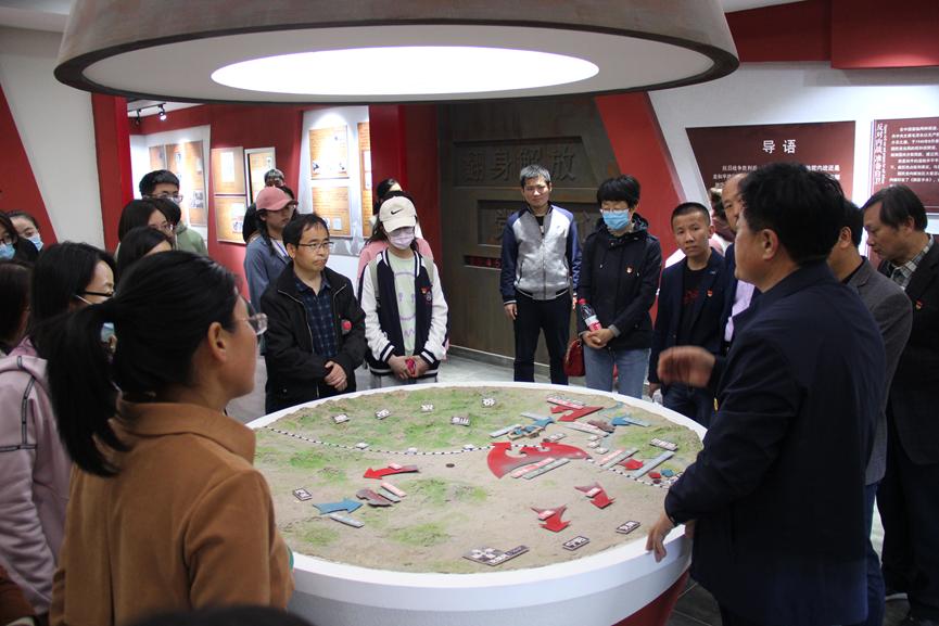 接下来,陈主任带领大家进入到岱岳革命历史展览馆中,进一步介绍革命历史。展馆共有“早期革命、不屈不挠”、“浴血奋战、前赴后继”、“翻身解放、党群同心”、“辉煌岱岳、继往开来”等四部分内容,展示了泰安市从1925年建立第一个党支部到抗日战争取得胜利、从解放战争到新中国成立以后的革命和建设历程。