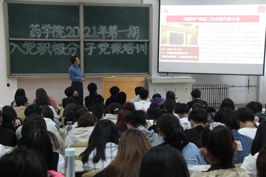 为进一步加强对入党积极分子的培养、教育和考察,切实提高入党积极分子的政治素质和理论修养。4月26日—4月28日,药学院党委举办2021年第一期入党积极分子培训班。药学院党委书记史仁玖、副书记宋洪涛及全体辅导员和两百多名入党积极分子参加培训。