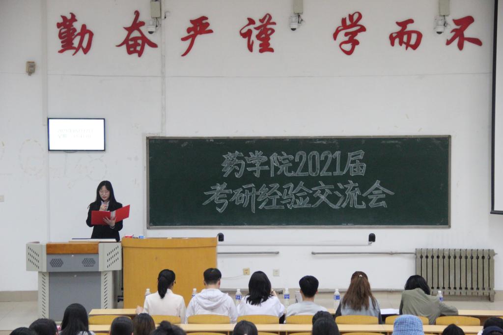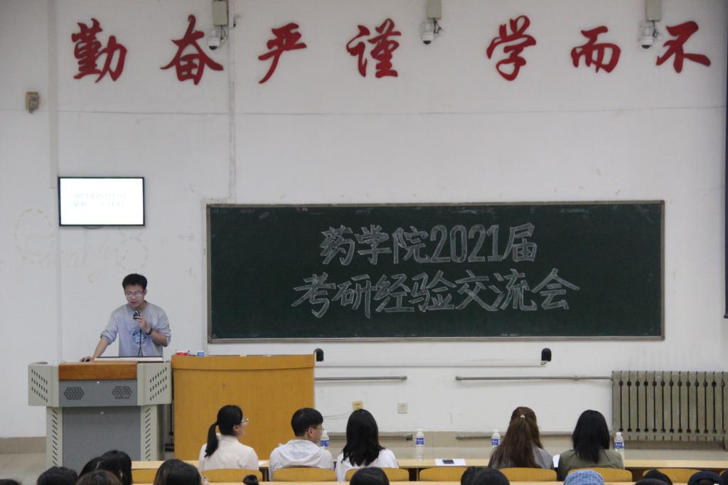 为向备战考研的同学分享考研相关知识与优秀学习方法,解答考研困惑,药学院于5月12日晚上在教学南楼C2017举办了药学院2021年考研经验交流会,本次交流会由闫颖同学主持,邀请了刘骞、李强、王慎兴等六位考研成功的优秀学生代表进行经验分享,传授考研备战方法。