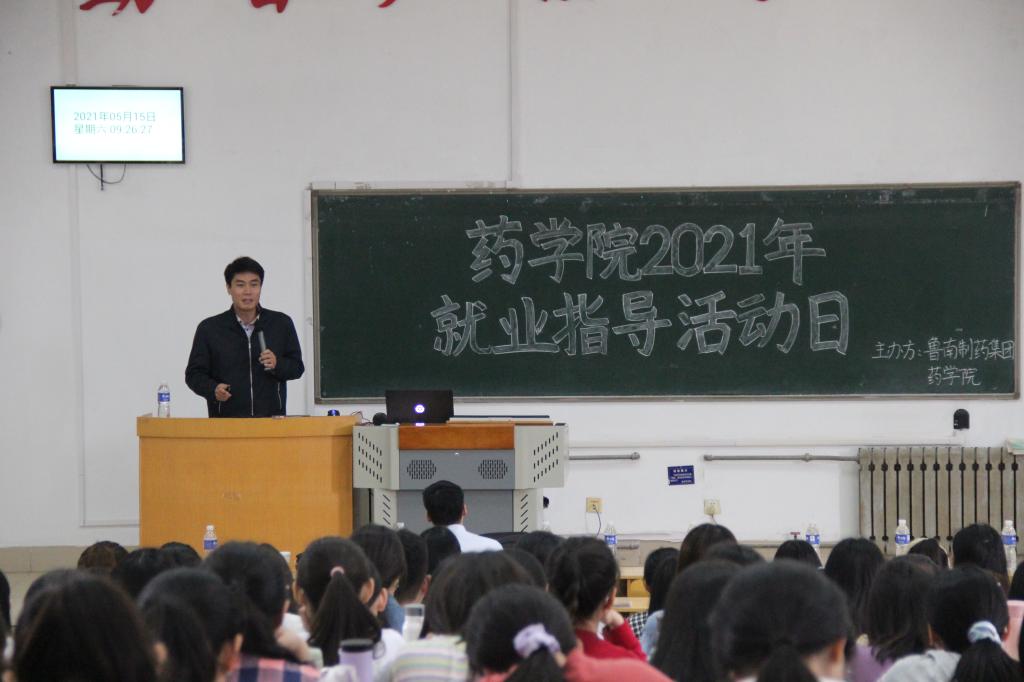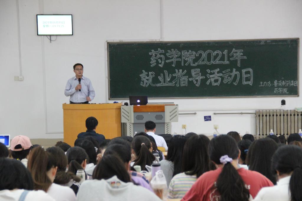 为增强大学生的就业意识,树立实习就业思维,了解企业文化,完善岗位认知,提高综合素质。5月15—16日,药学院联合鲁南制药集团在教学南楼C1014教室举办了就业指导日活动。校(院)招生就业部副部长王尧、鲁南制药集团人事部招聘总监宋祥云、校企合作办主任周冰、人事部经理郭永帅、优秀校友代表季晓伟及相关辅导员参加活动,2021届、2022届毕业生通过线上、线下方式参与活动。药学院党委副书记宋洪涛主持本次就业指导活动。