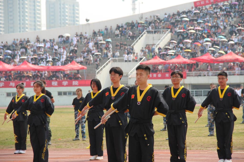 伴随着激昂的进行曲,运动会迎来了开幕式。药学院方队踏着整齐的步伐、昂首挺胸、阔步向前经过主席台,整个方队充满青春活力。经过整齐划一的武术操、气势磅礴的军体拳、精彩绝伦的双截棍表演及变换自如的团体操表演之后,运动会正式进入比赛环节。