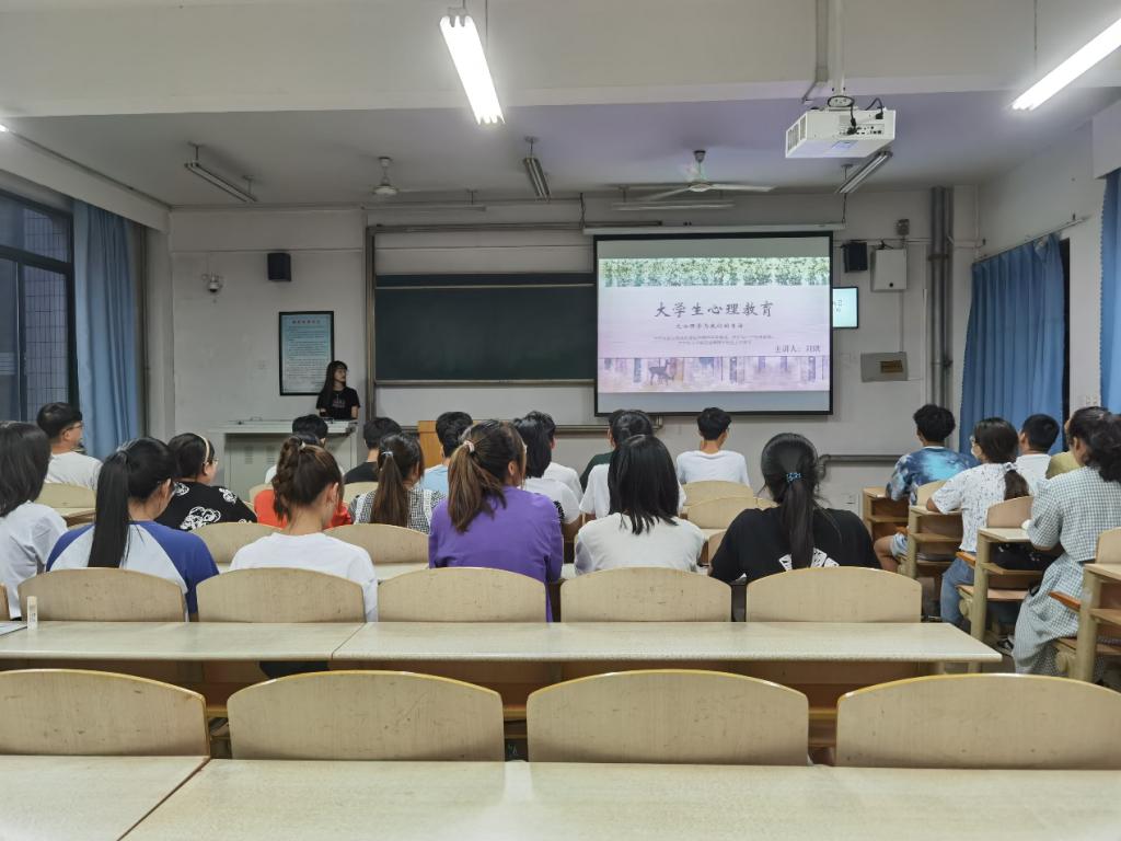 此次主题班会通过PPT讲解、观看视频、课堂讨论等形式展开。其中PPT讲解分为心理学中的应用、什么是心理健康、心理健康的标准和大学生的适应性这四个方面来展开阐述。