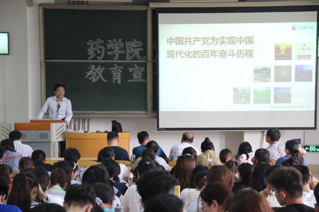 忆百年党史,看今朝兴荣。为了推进党史学习教育,使广大师生党员全面了解中国共产党百年奋斗的光辉历程和历史性贡献。6月10日下午,药学院在教学南楼C2009教室举办党史学习教育宣讲会,邀请马克思主义学院任冲教授为学院全体教职工、学生党员和部分入党积极分子作党史学习教育专题报告,宣讲会由学院党委书记史仁玖主持。