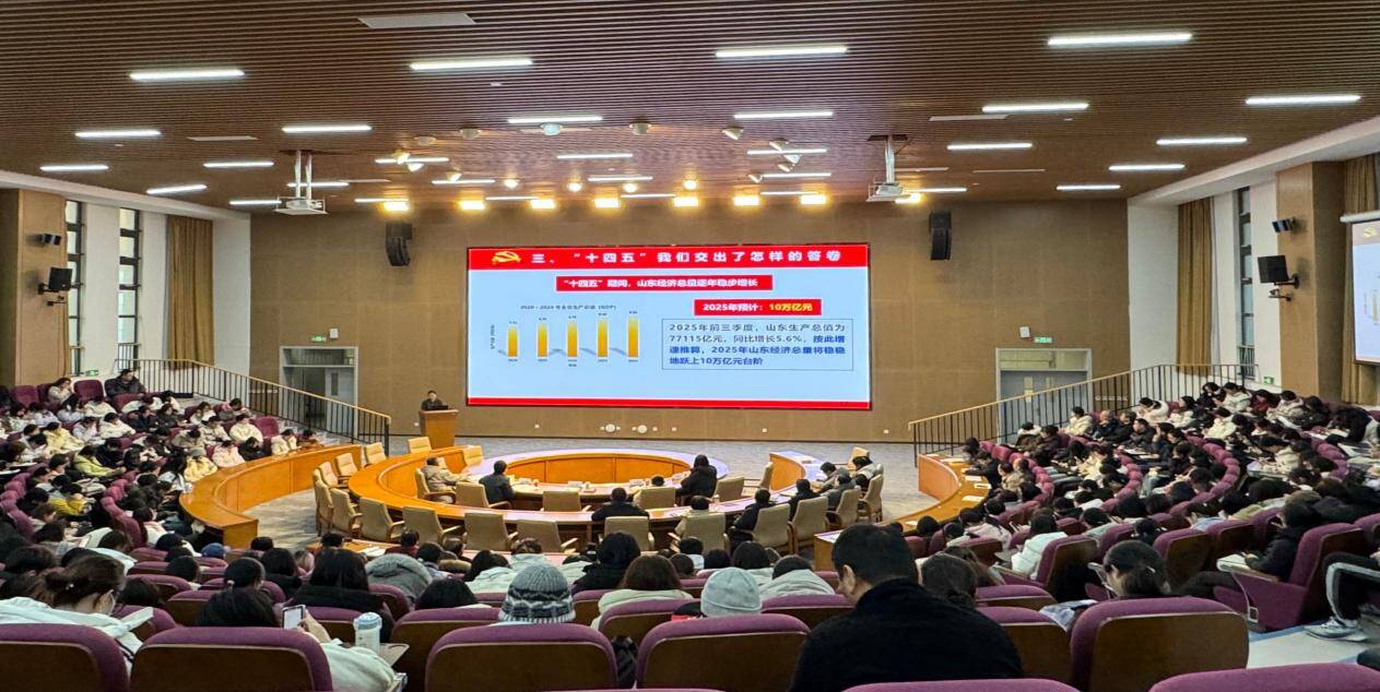 成敏阐释了党的二十届四中全会内涵,制定“十五五”规划的重大意义,全面总结了“十四五”时期我国取得的高质量发展成绩,经济总量稳步增长,科技创新成果丰硕,民生福祉显著提升,为“十五五”发展奠定了坚实基础。并从教育教学、学科建设、科技创新、人才建设、医疗服务等方面全面展示山一大“十四五”答卷。系统解读了“十五五”时期经济社会发展的指导思想、必须遵循的原则和主要目标,阐述了包括建设现代化产业体系、加快高水平科技自立自强等十二项重点任务。